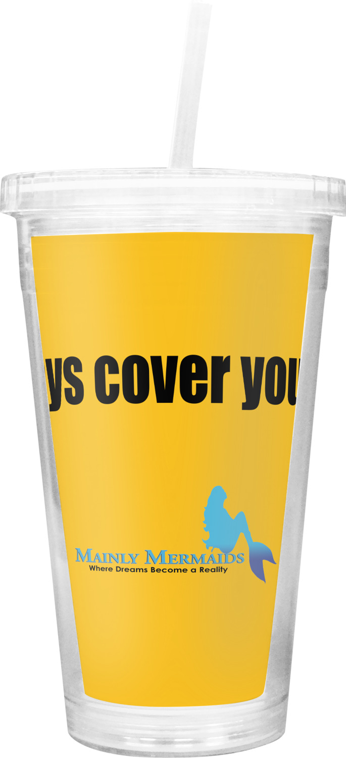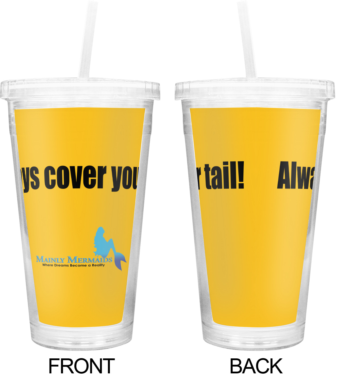 These tumblers are customized for you with a printed insert between the two walls of the cup. The lid screws on tight and helps to keep your drink cold.