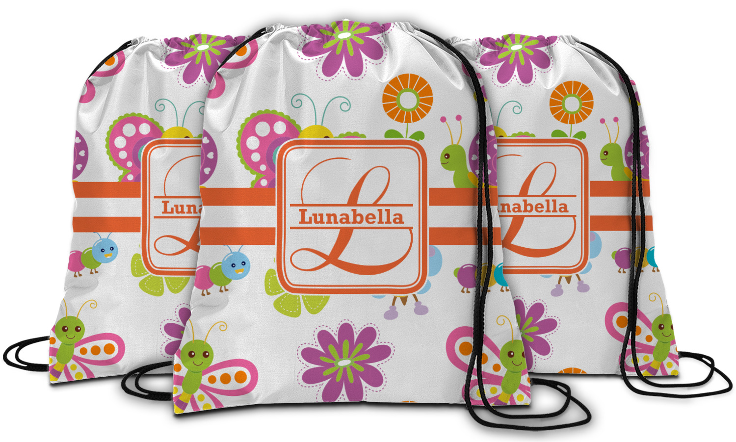 Our drawstring backpacks are custom made for you here in the USA. We offer a great selection of cinch bags and it is your choice to personalize them with the text of your choice, in the format of your choice i.e. monogram, name, initial, name & initial. We offer many different patterns and prints; and many of the patterns are available in 45 different colors.