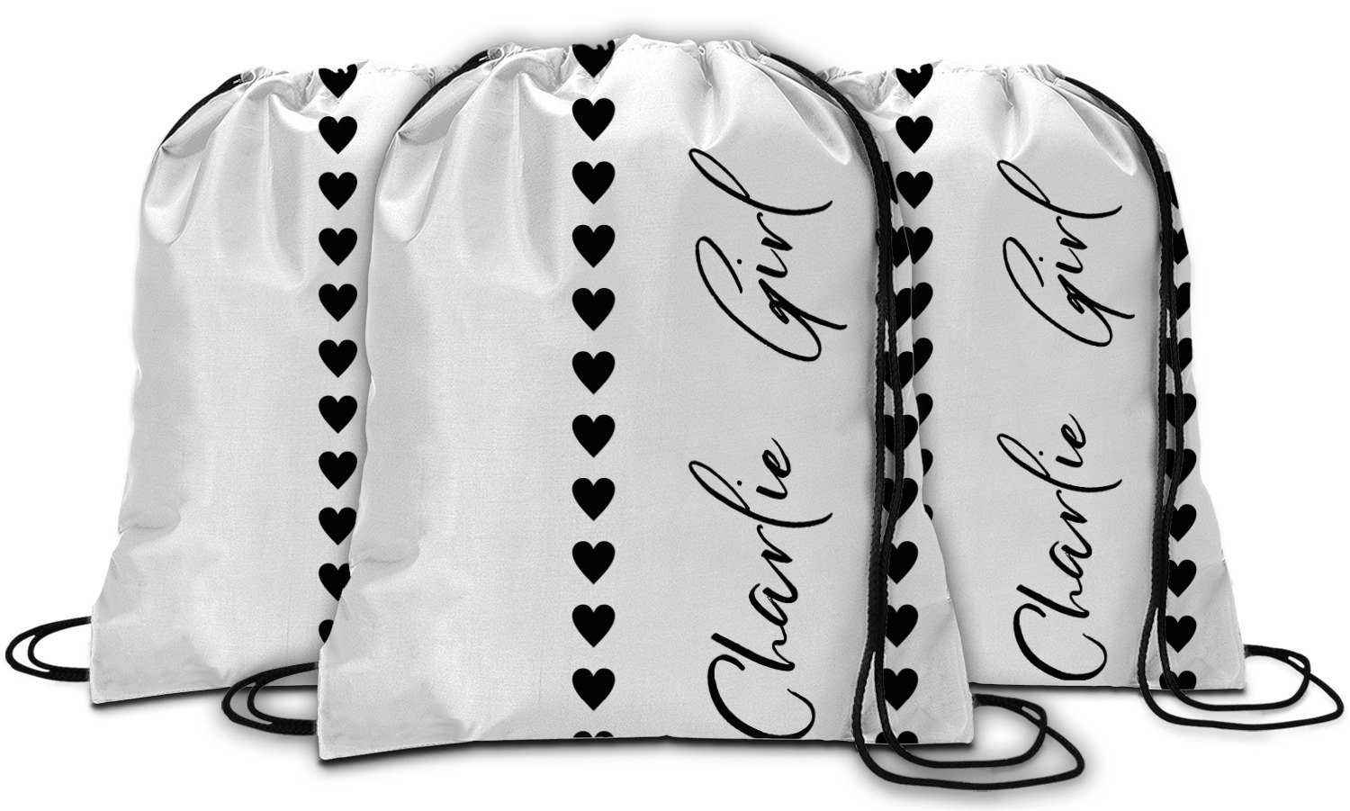 Our drawstring backpacks are custom made for you here in the USA. We offer a great selection of cinch bags and it is your choice to personalize them with the text of your choice, in the format of your choice i.e. monogram, name, initial, name & initial. We offer many different patterns and prints; and many of the patterns are available in 45 different colors.