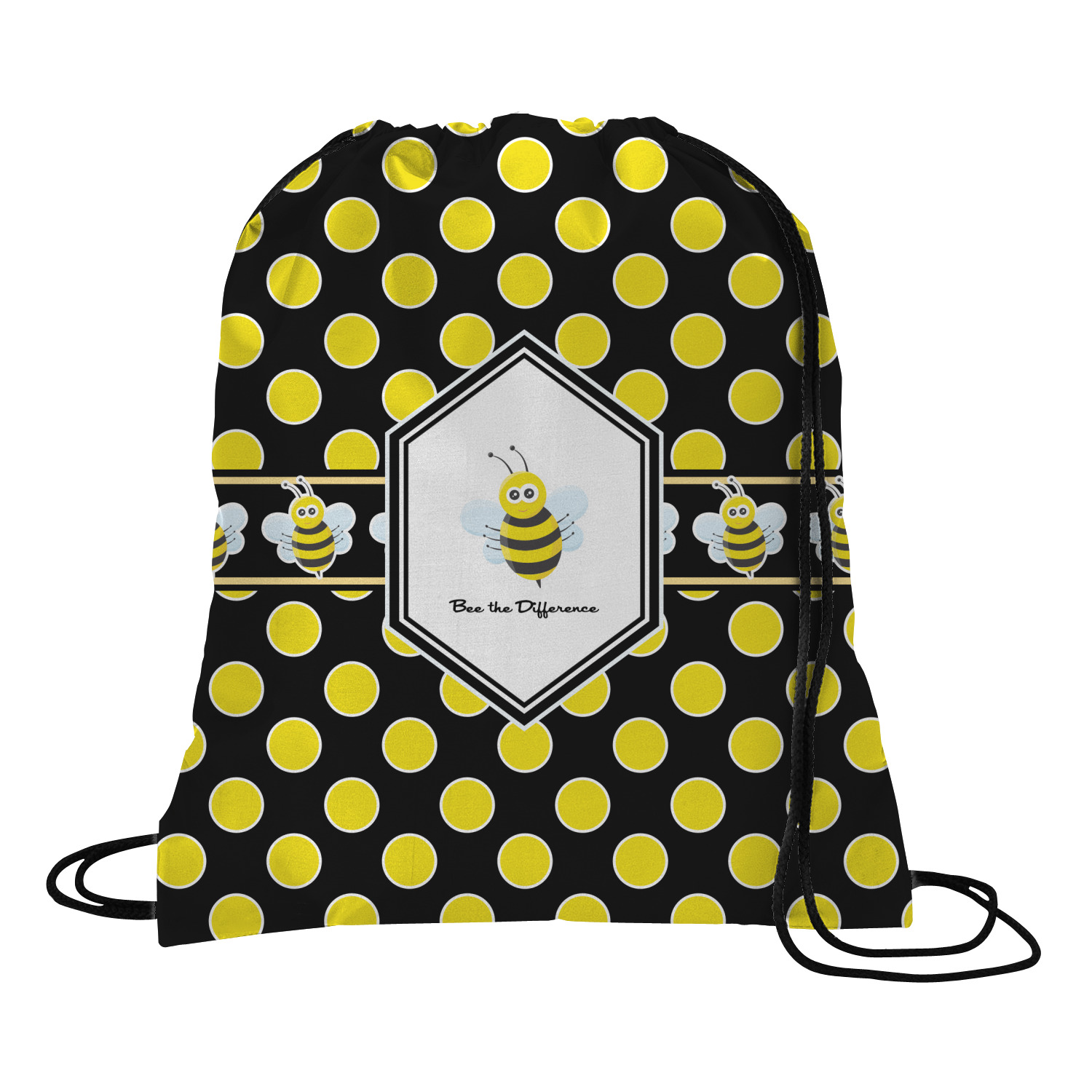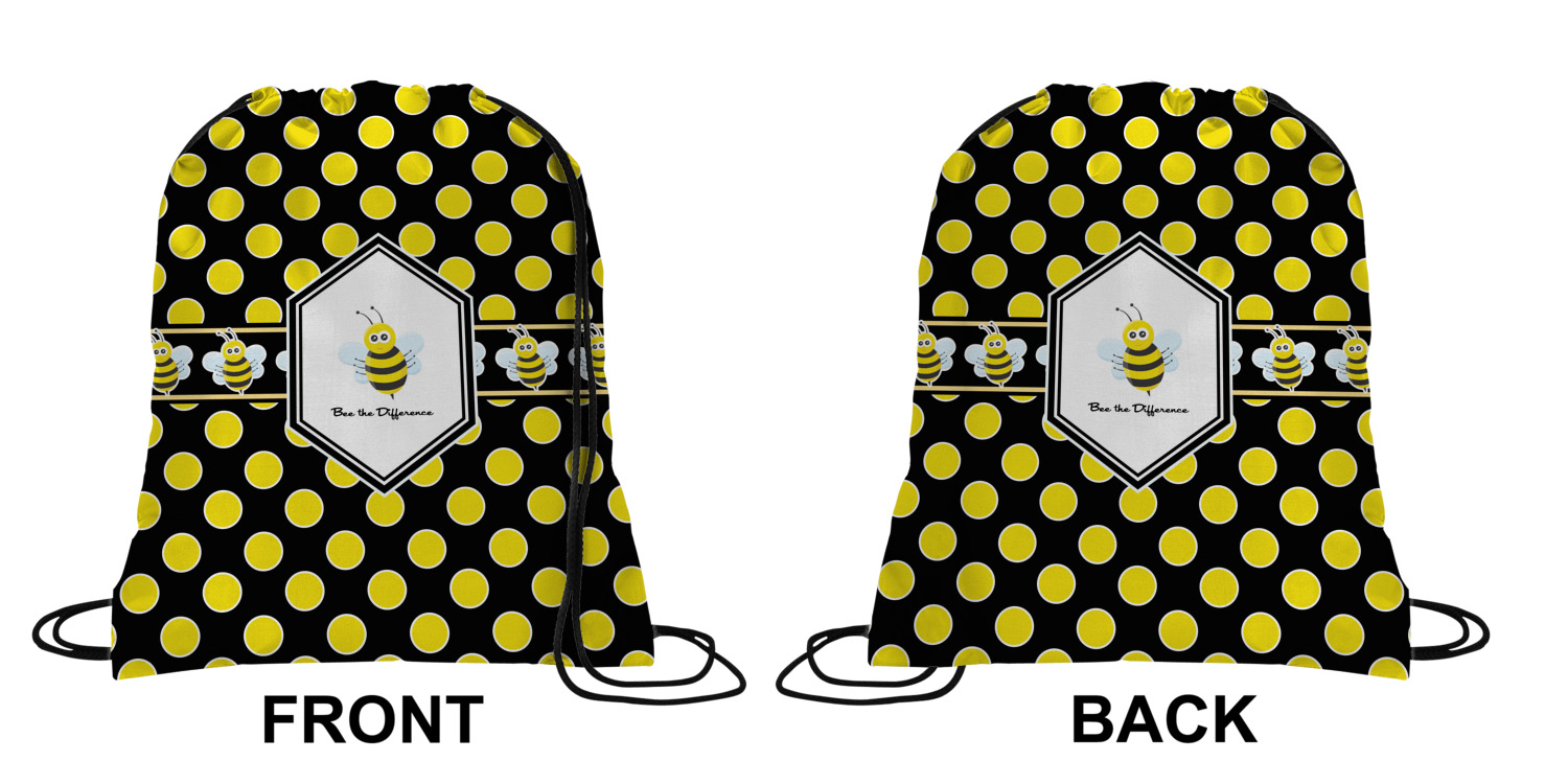 Your custom design will appear on the front and the back of the backpack. You can customize each side individually. The inside of the backpack is white and the drawstrings are black. The back pack is made of 100% polyester fabric.