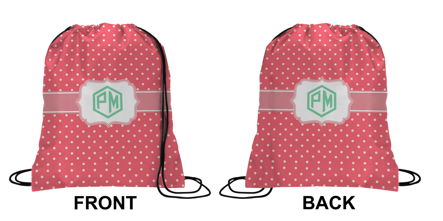 Our drawstring backpacks are custom made for you here in the USA. We offer a great selection of cinch bags and it is your choice to personalize them with the text of your choice, in the format of your choice i.e. monogram, name, initial, name & initial. We offer many different patterns and prints; and many of the patterns are available in 45 different colors.