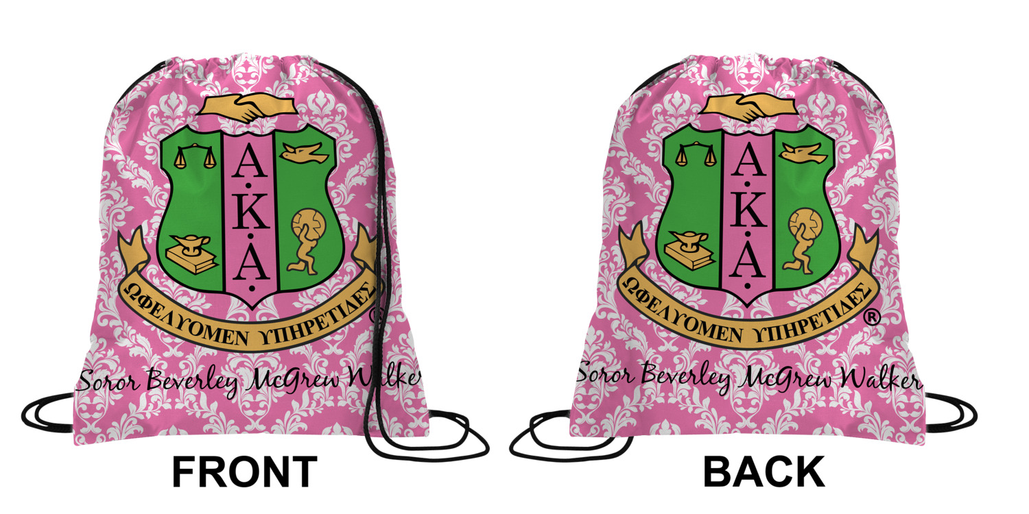 Your custom design will appear on the front and the back of the backpack. You can customize each side individually. The inside of the backpack is white and the drawstrings are black. The back pack is made of 100% polyester fabric.