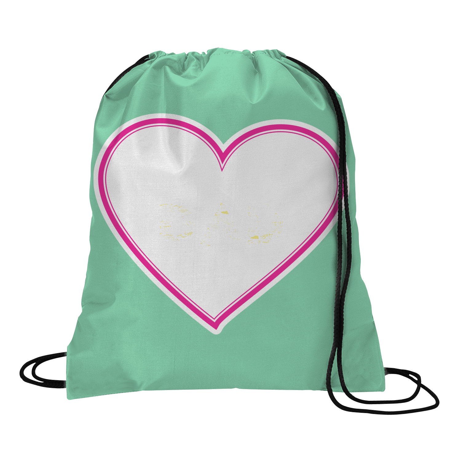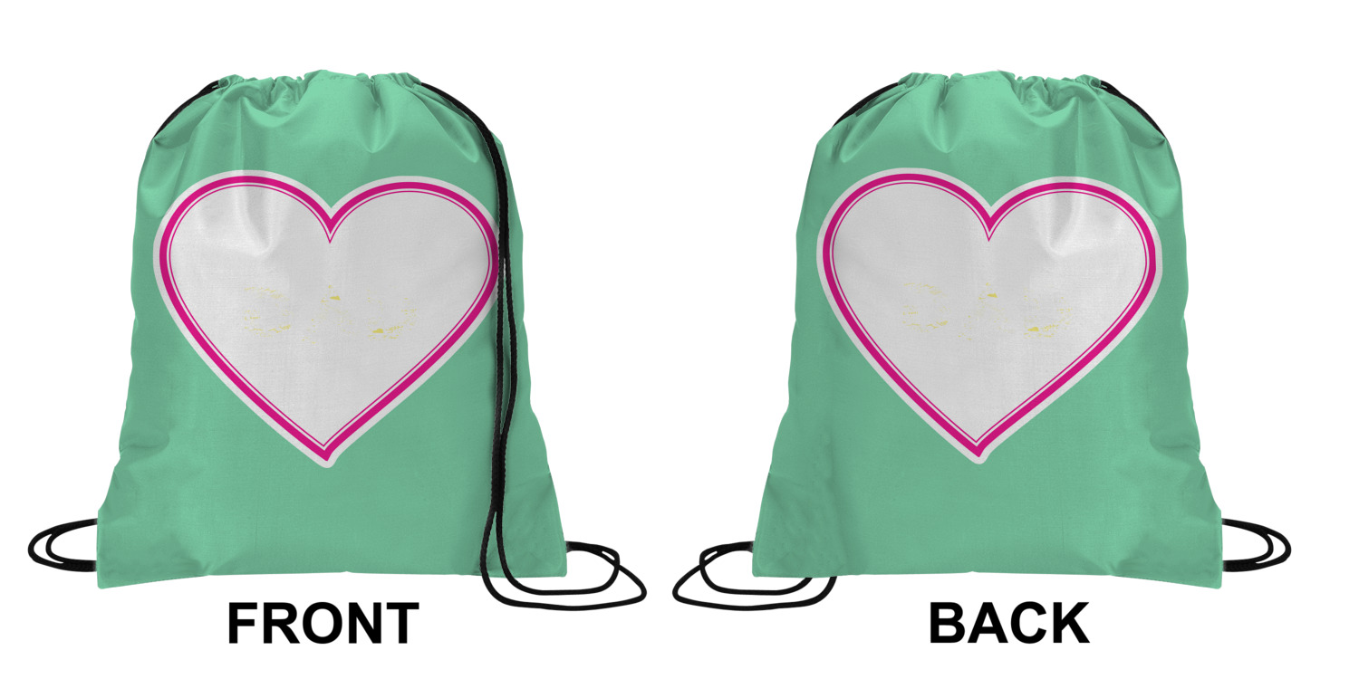 Your custom design will appear on the front and the back of the backpack. You can customize each side individually. The inside of the backpack is white and the drawstrings are black. The back pack is made of 100% polyester fabric.