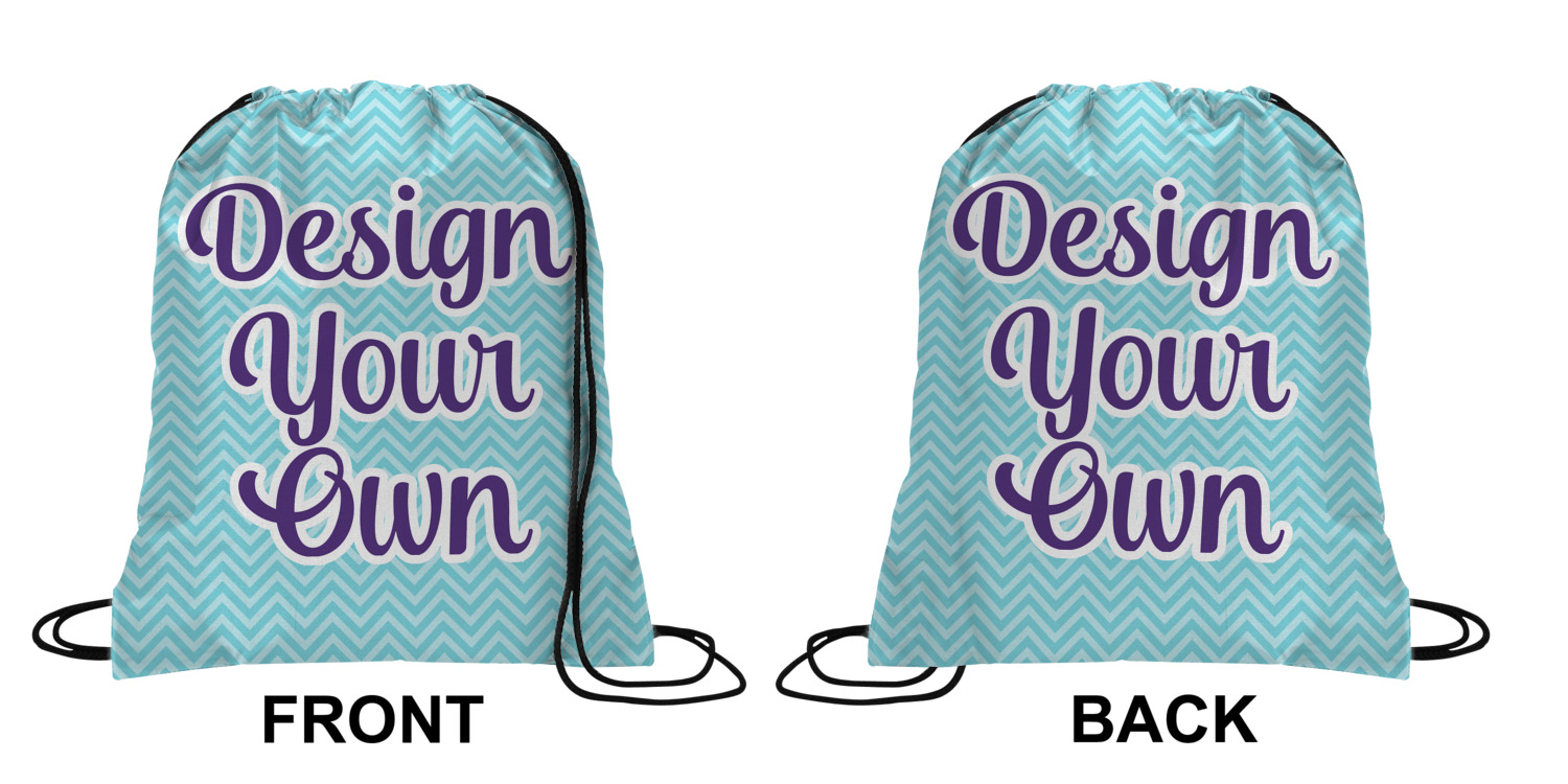 Your custom design will appear on the front and the back of the backpack. You can customize each side individually. The inside of the backpack is white and the drawstrings are black. The back pack is made of 100% polyester fabric.