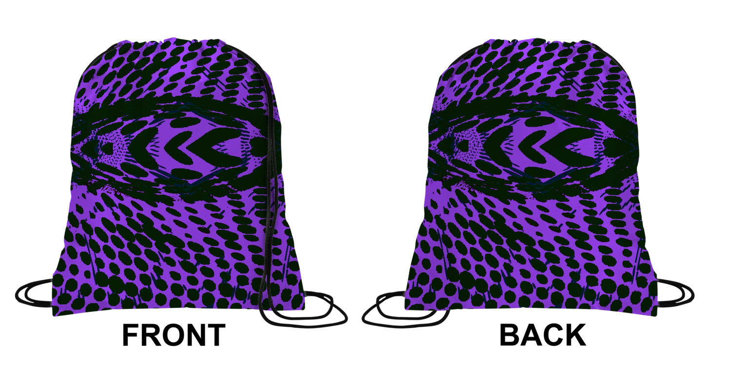 Your custom design will appear on the front and the back of the backpack. You can customize each side individually. The inside of the backpack is white and the drawstrings are black. The back pack is made of 100% polyester fabric.