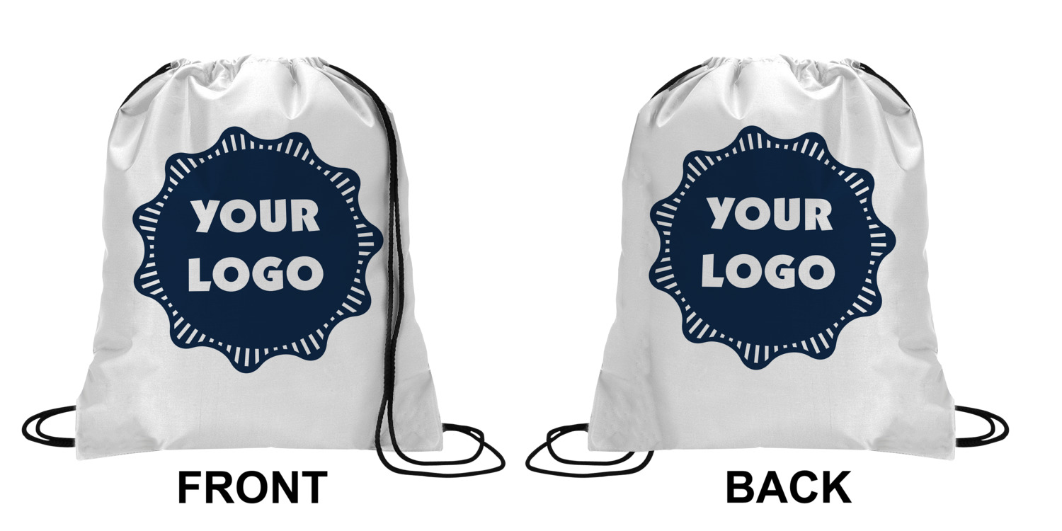 Your custom design will appear on the front and the back of the backpack. You can customize each side individually. The inside of the backpack is white and the drawstrings are black. The back pack is made of 100% polyester fabric.