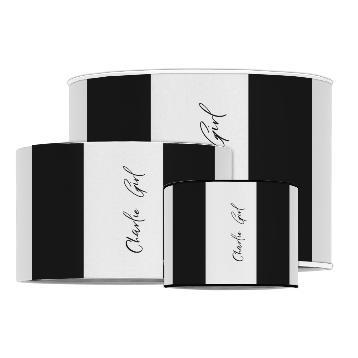 Our personalized drum lamp shades are available in 2 different materials: Poly-film or fabric. Poly-film lamp shades come with the option of white or black border trims to best match your customized design. Fabric lamp shades are finished with a rolled edge for a clean modern look.