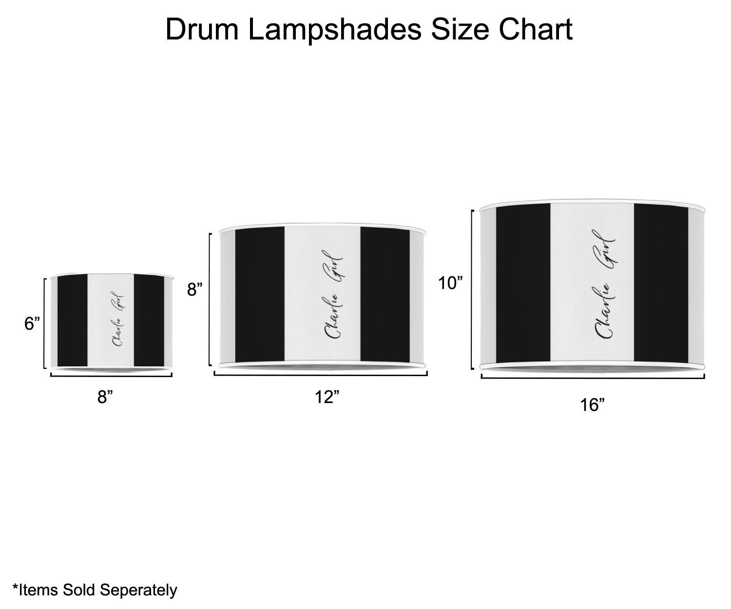 The classic drum lamp shade with simple cylindrical design and straight lines is a great choice for the modern home. Our custom made drum lamp shades will work well in the bedroom, nursery, on the hallway table, or even in an office as a desk lamp.