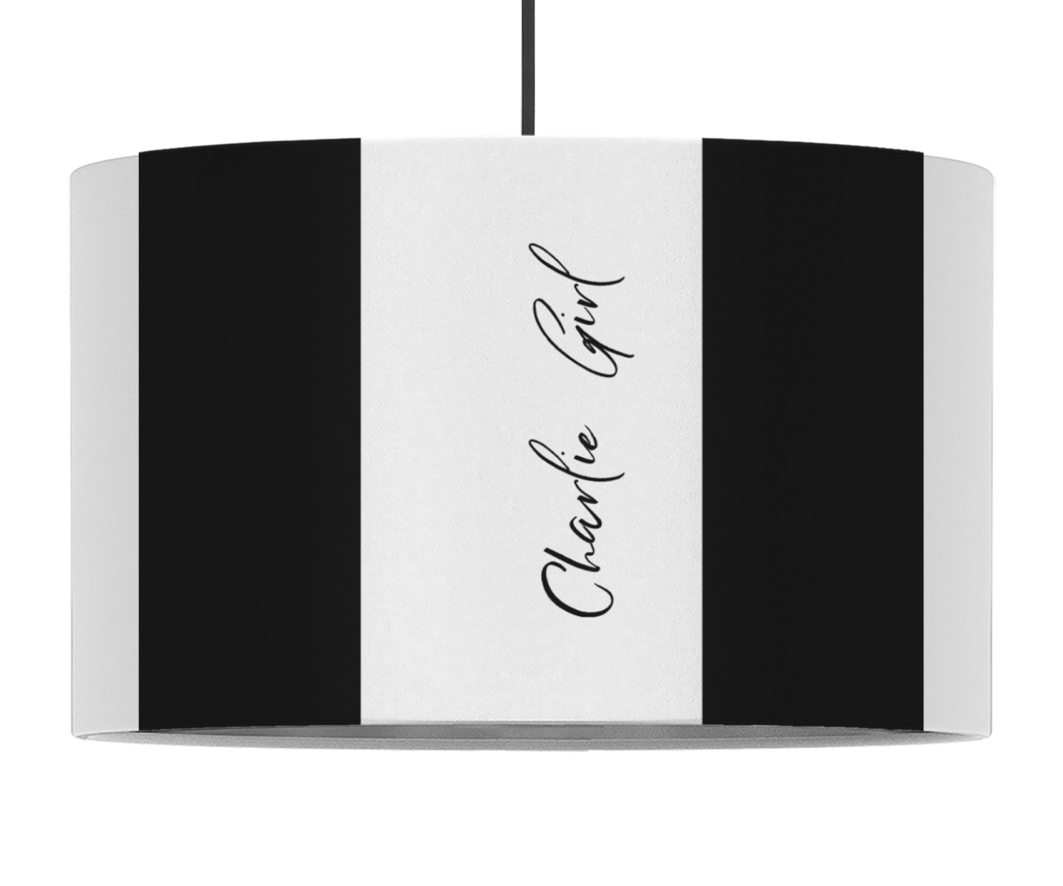 These pendant lampshades are in a cylindrical, drum shape. Available in 2 sizes - 16 inch diameter and a height of 10 inches or 12 inch diameter with a height of 8 inches, this lantern pendant light will not go unnoticed in your home. The interior of this light shade is made of flexible, smooth plastic, and the base color of the lamp is white. Your personalization is displayed on the exterior of this custom lampshade. The fabric shades the fabric fully wraps the ring for a sleek look. Your purchase includes a 12 foot long cord that has a convenient on and off switch attached, the cord is black in color with a tasteful cloth covering over the cord to add the sophisticated look to this light fixture. This lamp can fit a 60 or 75 watt light bulb, but the bulb is not included. Please scroll through the images above to learn more about the structure and shaping of this lamp compared to the other ones we offer.