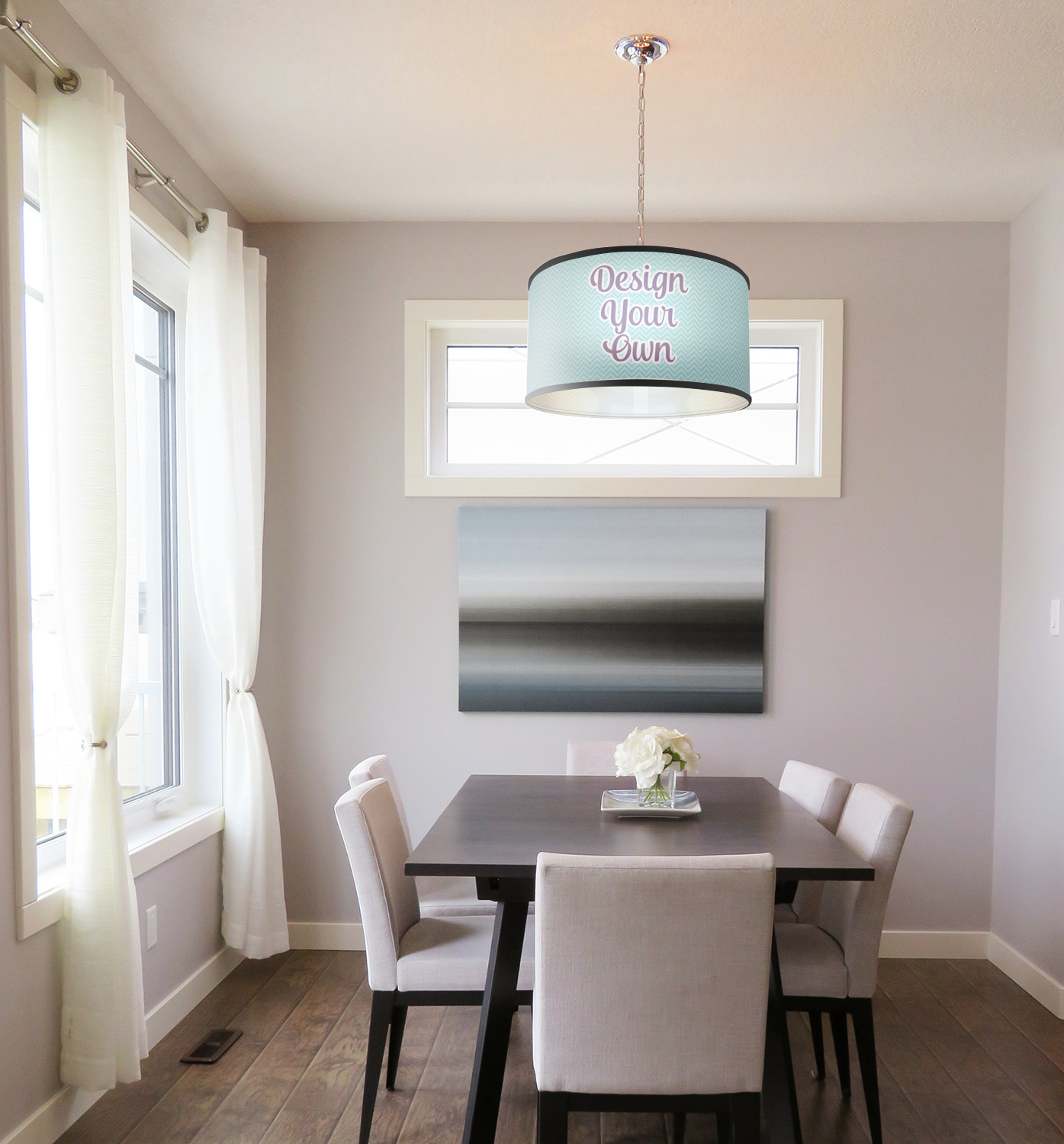 Add a bright splash of color and personality to any room in your home with one of our drum lampshades! These lampshades are the perfect addition to your homes decor; they will easily dress up any of your light fixtures. Customize a few and hang them over your dining area, your kitchen bar, or a cozy reading nook! If youre not looking for a hanging lampshade, you can easily remove the cord and use it on a floor lamp in your home as well!