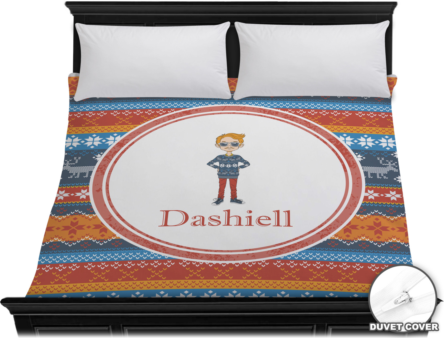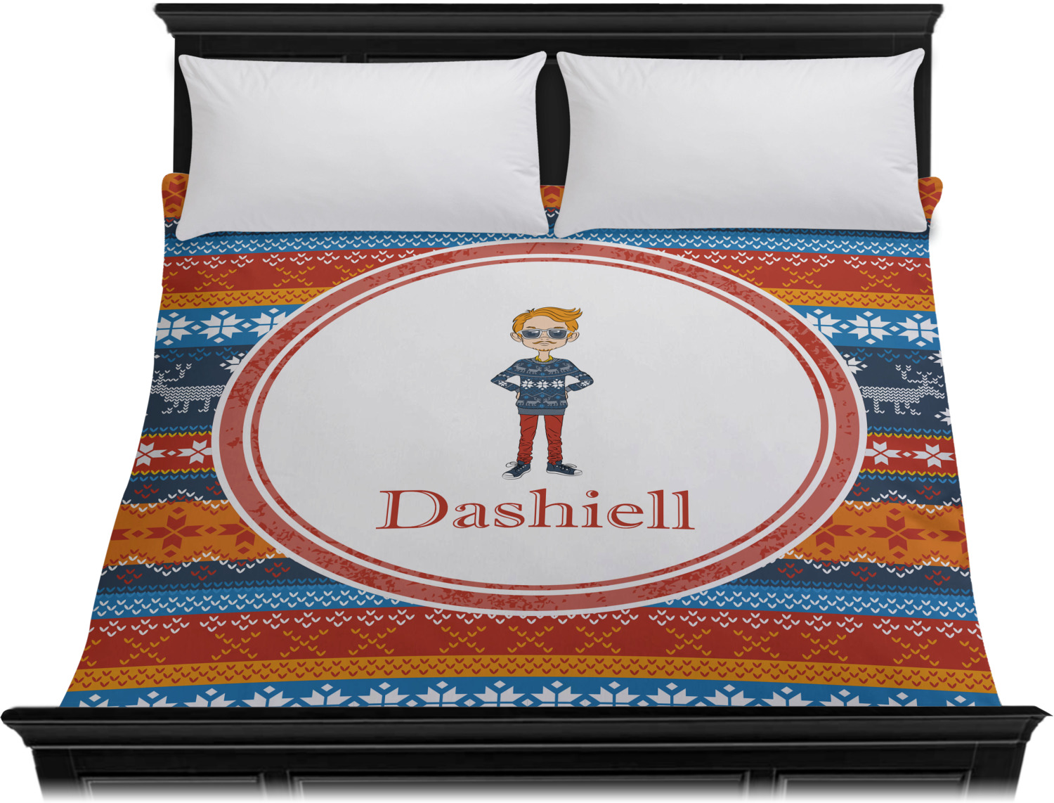 Hipster Winter Design on Custom Duvet Cover - King