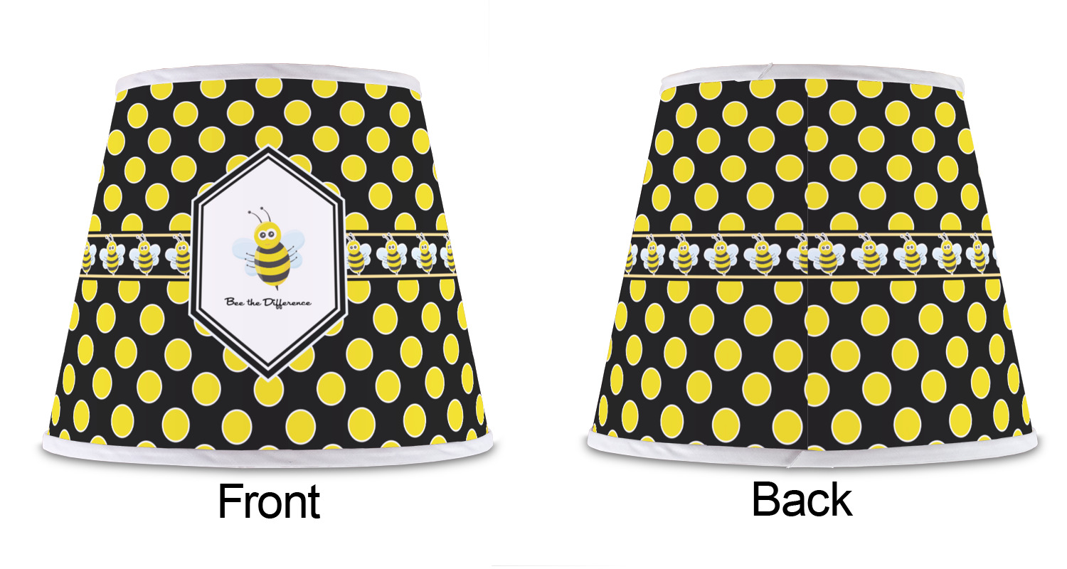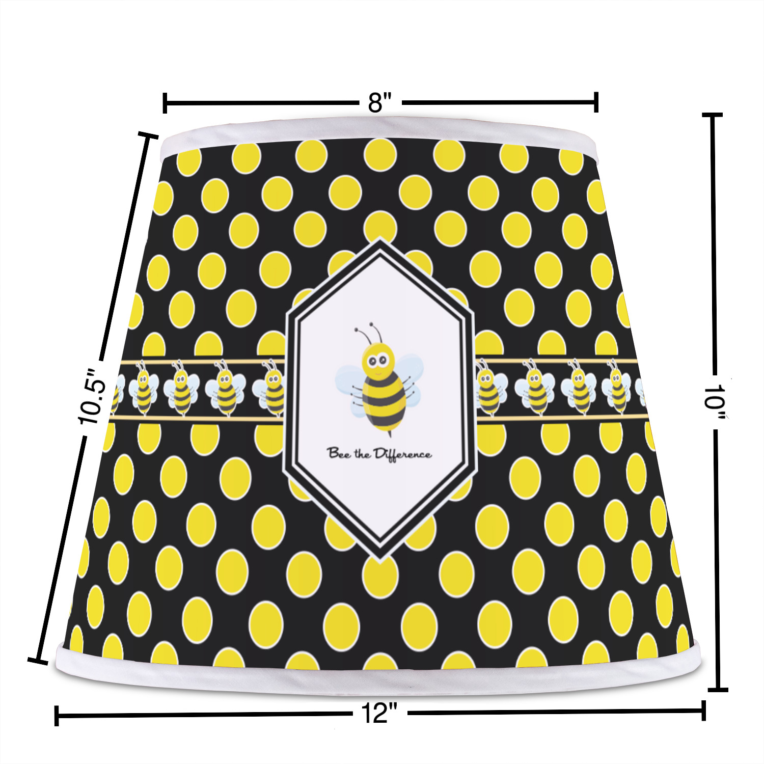 The base of this lampshade is 12 inches in diameter, and the top spans 8 inches in diameter. The total height of the lampshade is 10 inches. The angled nature of this custom lampshade concentrates the light, making it ideal for smaller spaces. This lampshade is made of matte, polyfilm, and displays your customization in its middle. The top and bottom of this colorful lamp shade are lined with a white fabric ribbon (which can be replaced with black inside the design studio) which frames your design and creates a sophisticated finish. As an UNO fitter lampshade, this unique lamp shade will fit a variety of bases.