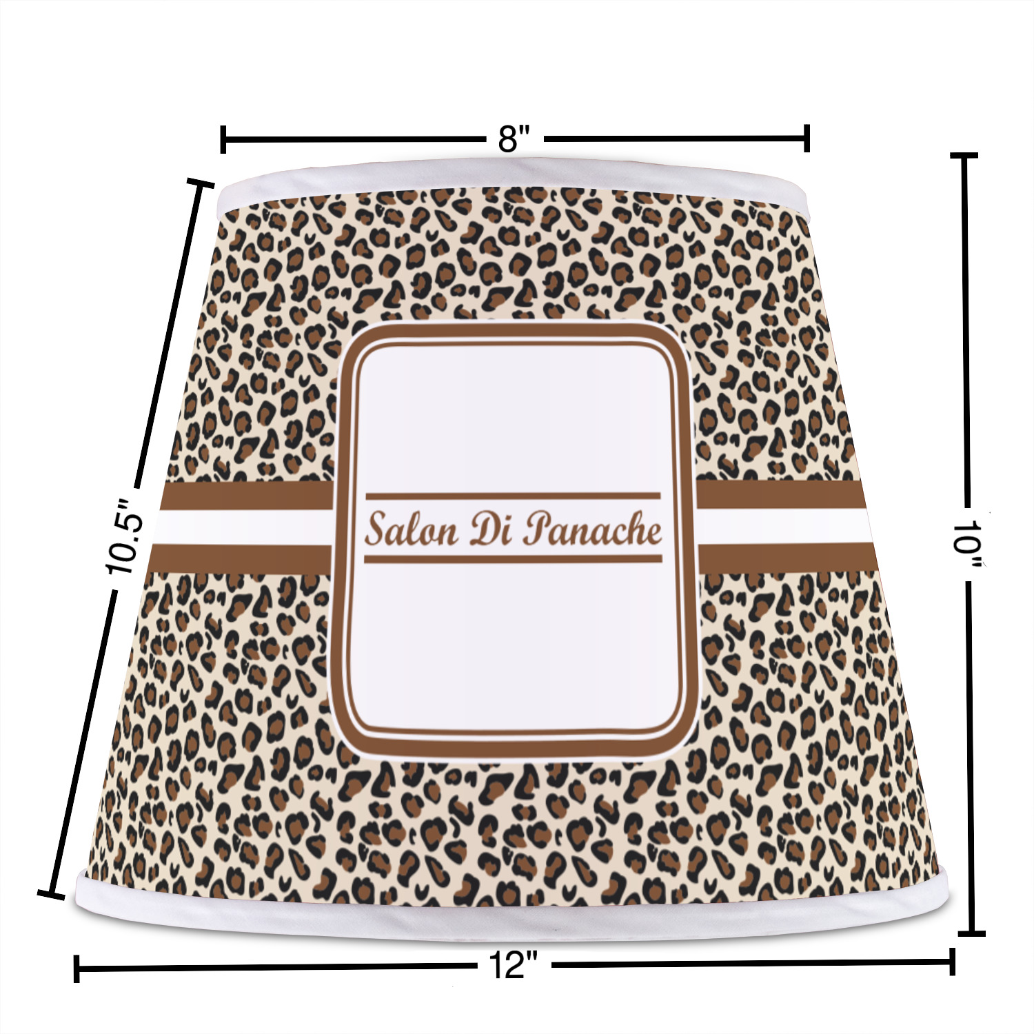 The base of this lampshade is 12 inches in diameter, and the top spans 8 inches in diameter. The total height of the lampshade is 10 inches. The angled nature of this custom lampshade concentrates the light, making it ideal for smaller spaces. This lampshade is made of matte, polyfilm, and displays your customization in its middle. The top and bottom of this colorful lamp shade are lined with a white fabric ribbon (which can be replaced with black inside the design studio) which frames your design and creates a sophisticated finish. As an UNO fitter lampshade, this unique lamp shade will fit a variety of bases.