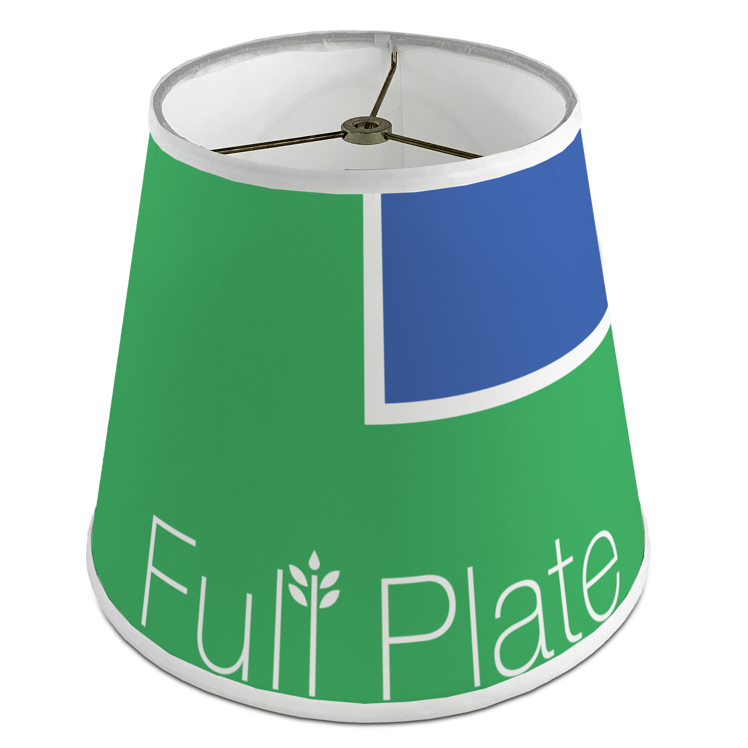 The base of this lampshade is 12 inches in diameter, and the top spans 8 inches in diameter. The total height of the lampshade is 10 inches. The angled nature of this custom lampshade concentrates the light, making it ideal for smaller spaces. This lampshade is made of matte, polyfilm, and displays your customization in its middle. The top and bottom of this colorful lamp shade are lined with a white fabric ribbon (which can be replaced with black inside the design studio) which frames your design and creates a sophisticated finish. As an UNO fitter lampshade, this unique lamp shade will fit a variety of bases.