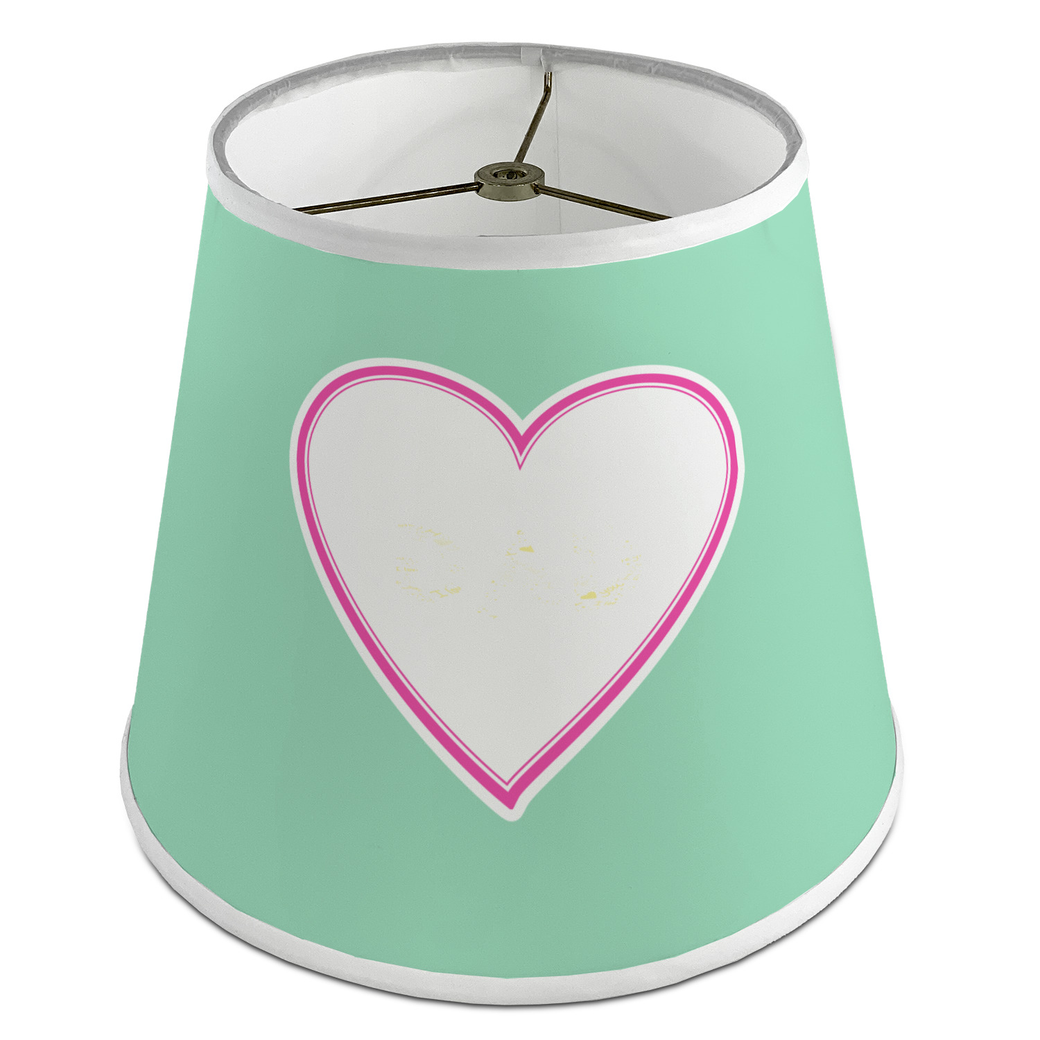 The base of this lampshade is 12 inches in diameter, and the top spans 8 inches in diameter. The total height of the lampshade is 10 inches. The angled nature of this custom lampshade concentrates the light, making it ideal for smaller spaces. This lampshade is made of matte, polyfilm, and displays your customization in its middle. The top and bottom of this colorful lamp shade are lined with a white fabric ribbon (which can be replaced with black inside the design studio) which frames your design and creates a sophisticated finish. As an UNO fitter lampshade, this unique lamp shade will fit a variety of bases.