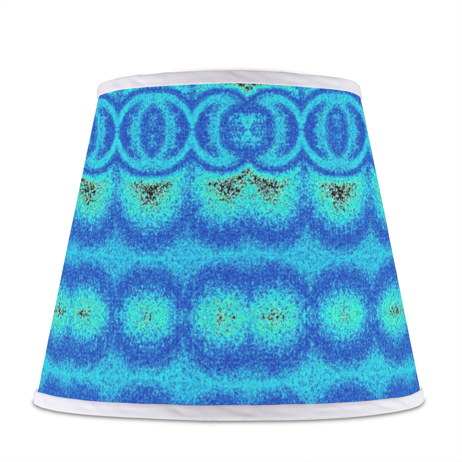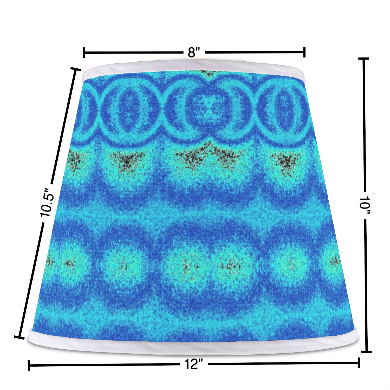The base of this lampshade is 12 inches in diameter, and the top spans 8 inches in diameter. The total height of the lampshade is 10 inches. The angled nature of this custom lampshade concentrates the light, making it ideal for smaller spaces. This lampshade is made of matte, polyfilm, and displays your customization in its middle. The top and bottom of this colorful lamp shade are lined with a white fabric ribbon (which can be replaced with black inside the design studio) which frames your design and creates a sophisticated finish. As an UNO fitter lampshade, this unique lamp shade will fit a variety of bases.