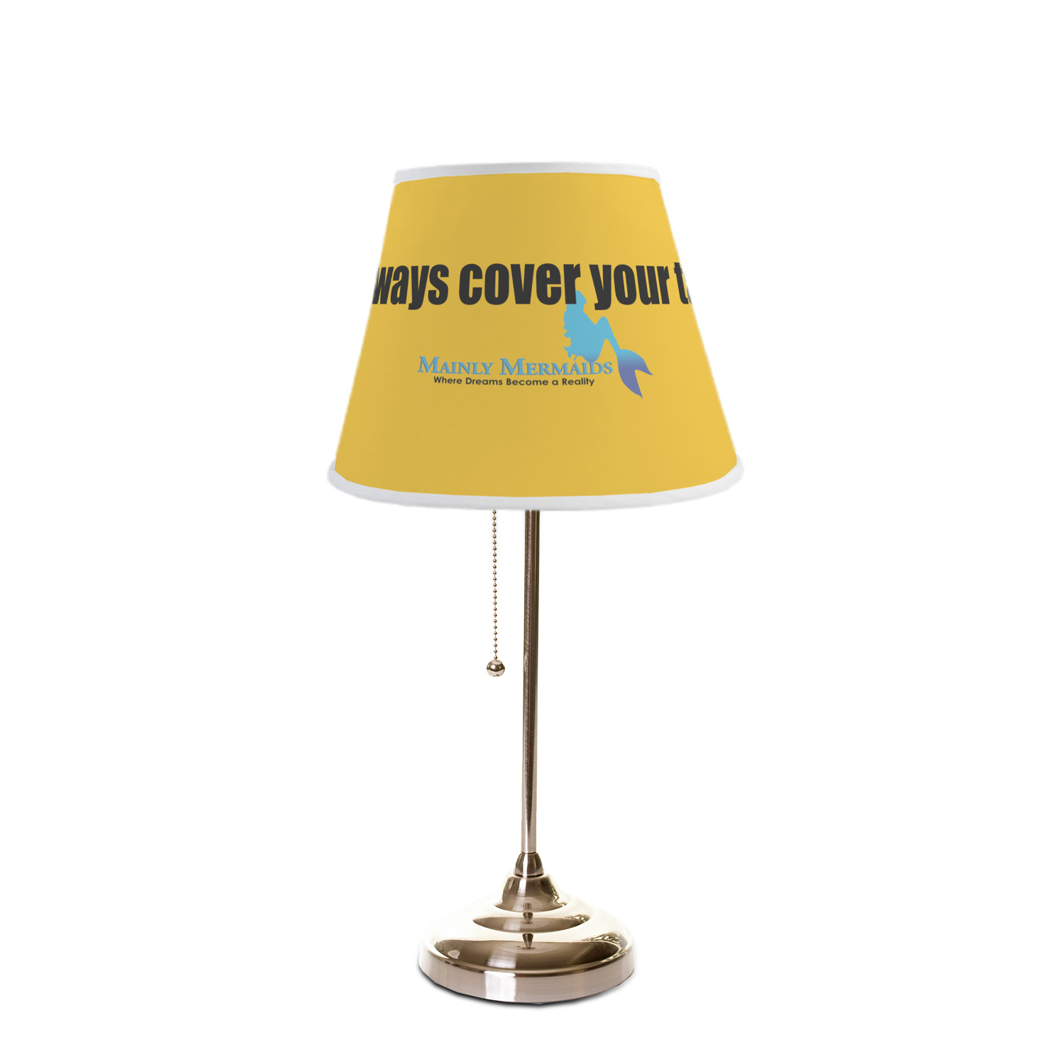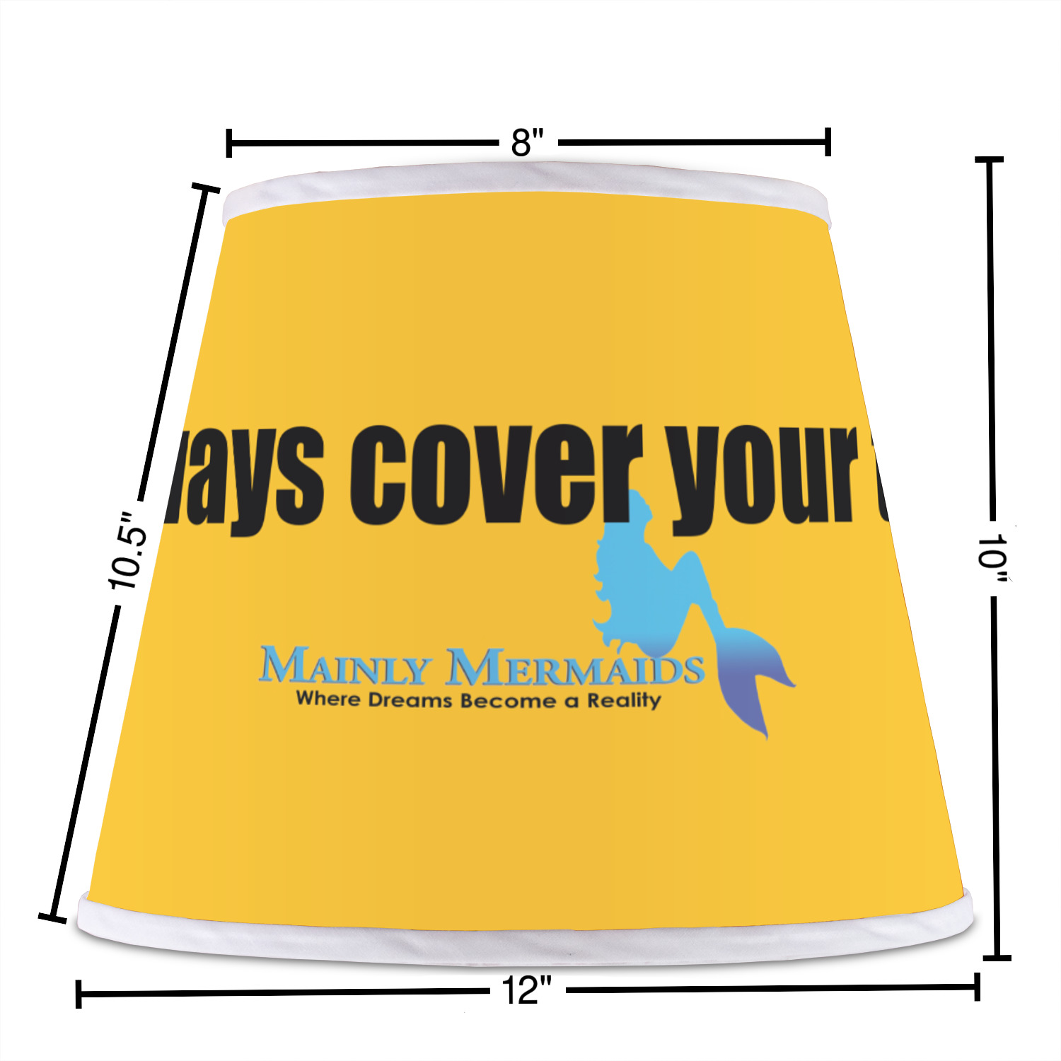 The base of this lampshade is 12 inches in diameter, and the top spans 8 inches in diameter. The total height of the lampshade is 10 inches. The angled nature of this custom lampshade concentrates the light, making it ideal for smaller spaces. This lampshade is made of matte, polyfilm, and displays your customization in its middle. The top and bottom of this colorful lamp shade are lined with a white fabric ribbon (which can be replaced with black inside the design studio) which frames your design and creates a sophisticated finish. As an UNO fitter lampshade, this unique lamp shade will fit a variety of bases.