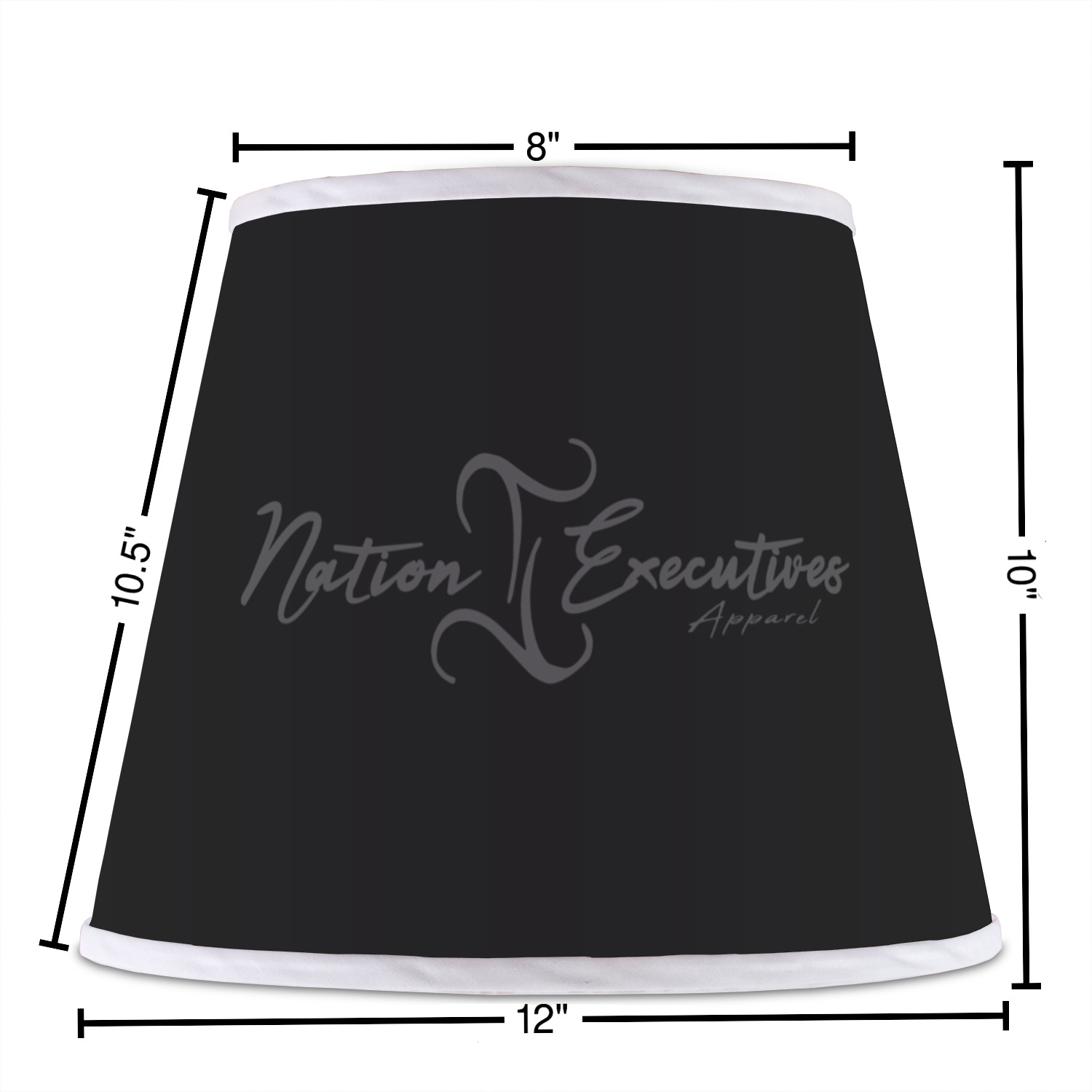 The base of this lampshade is 12 inches in diameter, and the top spans 8 inches in diameter. The total height of the lampshade is 10 inches. The angled nature of this custom lampshade concentrates the light, making it ideal for smaller spaces. This lampshade is made of matte, polyfilm, and displays your customization in its middle. The top and bottom of this colorful lamp shade are lined with a white fabric ribbon (which can be replaced with black inside the design studio) which frames your design and creates a sophisticated finish. As an UNO fitter lampshade, this unique lamp shade will fit a variety of bases.