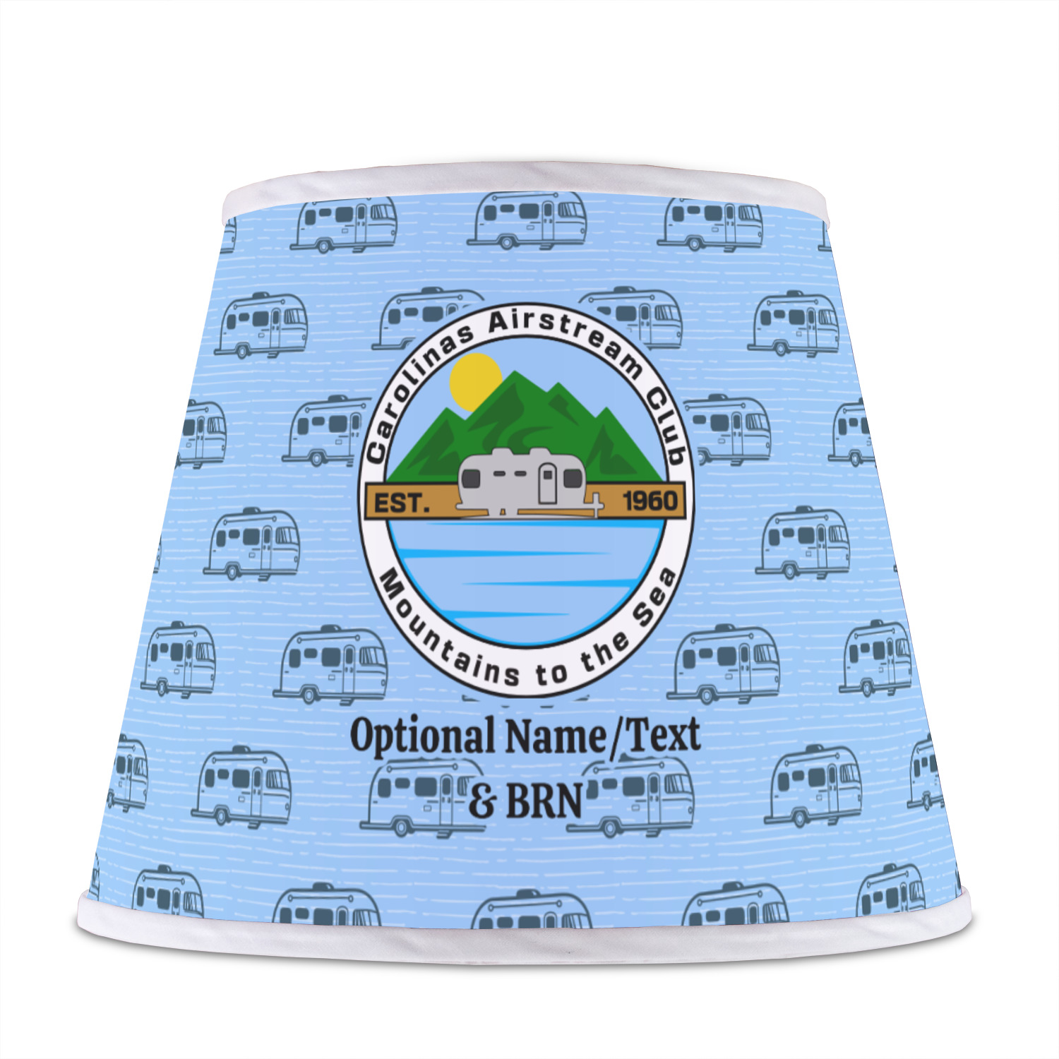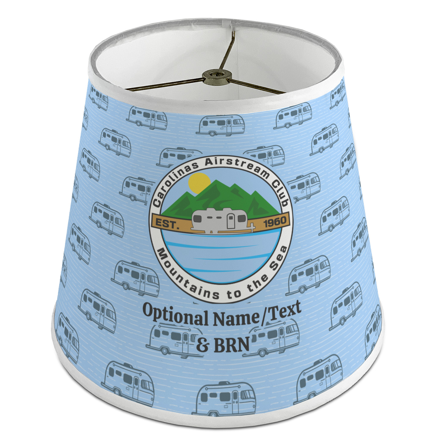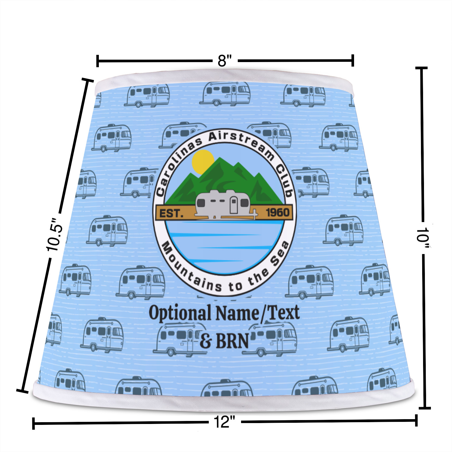 The base of this lampshade is 12 inches in diameter, and the top spans 8 inches in diameter. The total height of the lampshade is 10 inches. The angled nature of this custom lampshade concentrates the light, making it ideal for smaller spaces. This lampshade is made of matte, polyfilm, and displays your customization in its middle. The top and bottom of this colorful lamp shade are lined with a white fabric ribbon (which can be replaced with black inside the design studio) which frames your design and creates a sophisticated finish. As an UNO fitter lampshade, this unique lamp shade will fit a variety of bases.