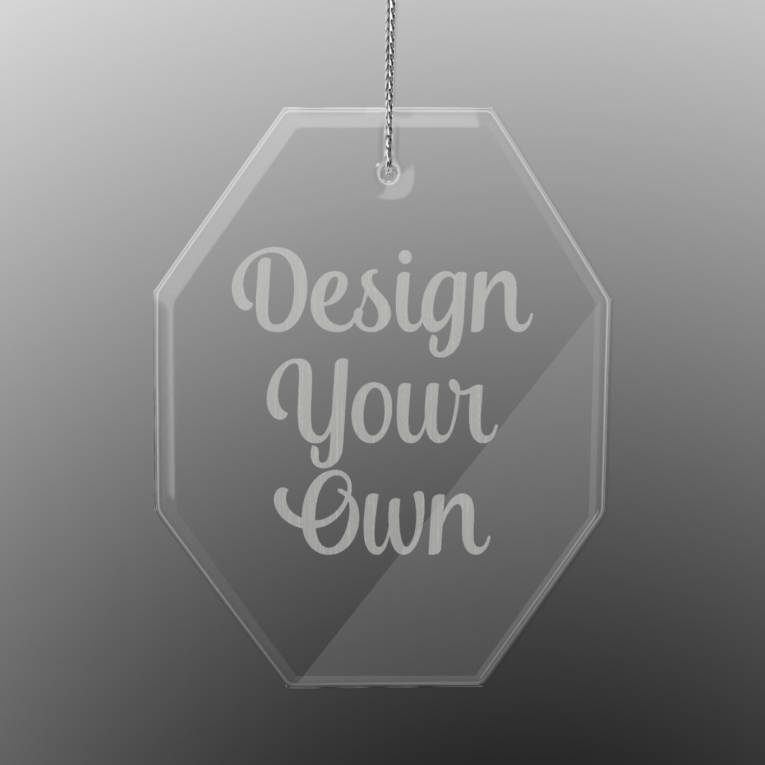 We offer four different clear glass ornaments to personalize. Available in round or octagon shape. Each glass ornament is engraved with a design of your choice. Create a quote, use a photo, or logo for us to etch into your custom ornament. We pair each ornament with a silver string for you to hang on your Christmas tree!