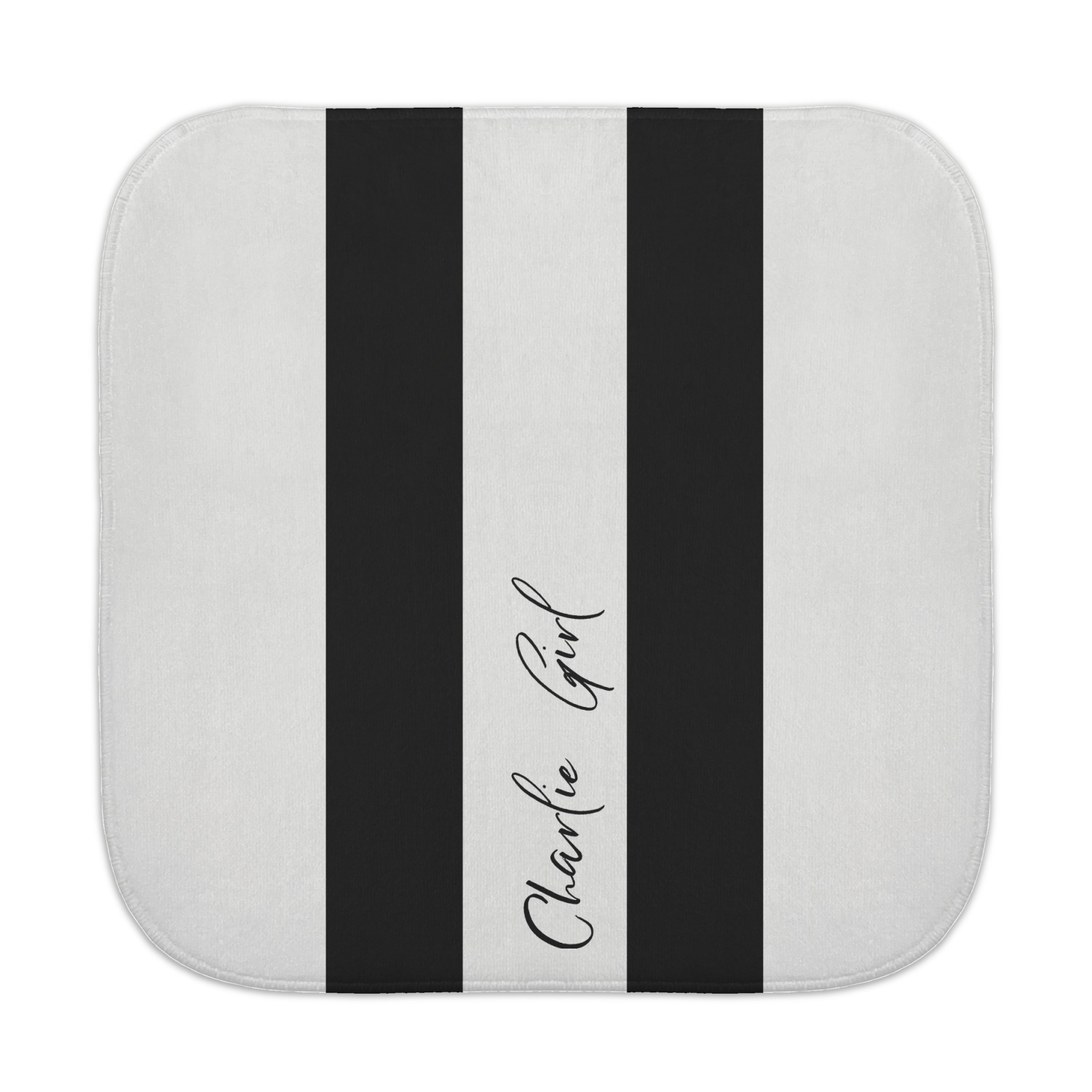 The round corner 13x13 face towel is partly microfiber and partly cotton, The top features a luxurious, velvety-soft velour like microfiber that feels gentle on your skin, while the bottom features cotton loops. The dual texture of this face cloth makes it thicker (especially compared to the square one). It is also multi-purpose towel and ideal for your face, as well as your body. Your customization is displayed across the front of the this towel, while the back remains white in color.