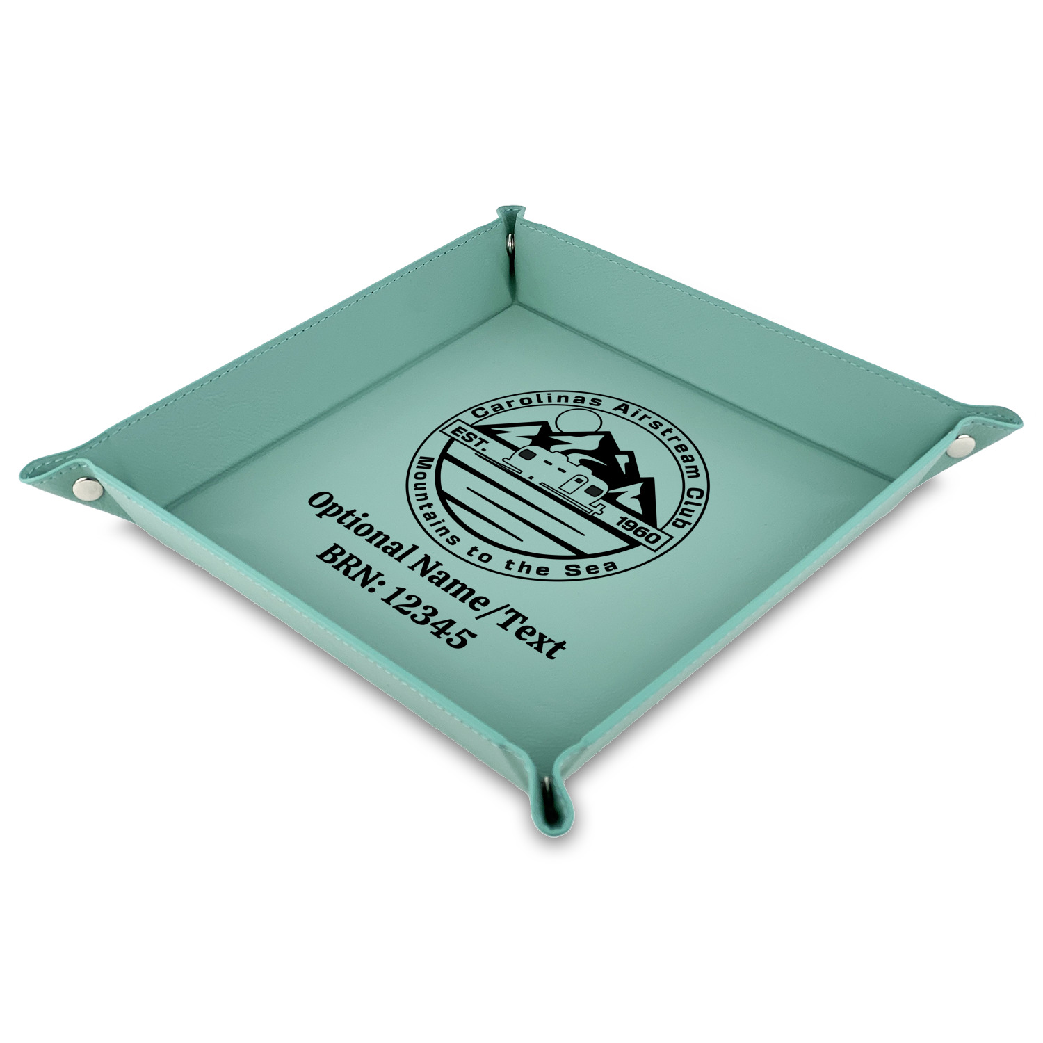 Carolina Airstream Club Design on Custom Faux Leather Dice Tray - 9" x 9" - Teal
