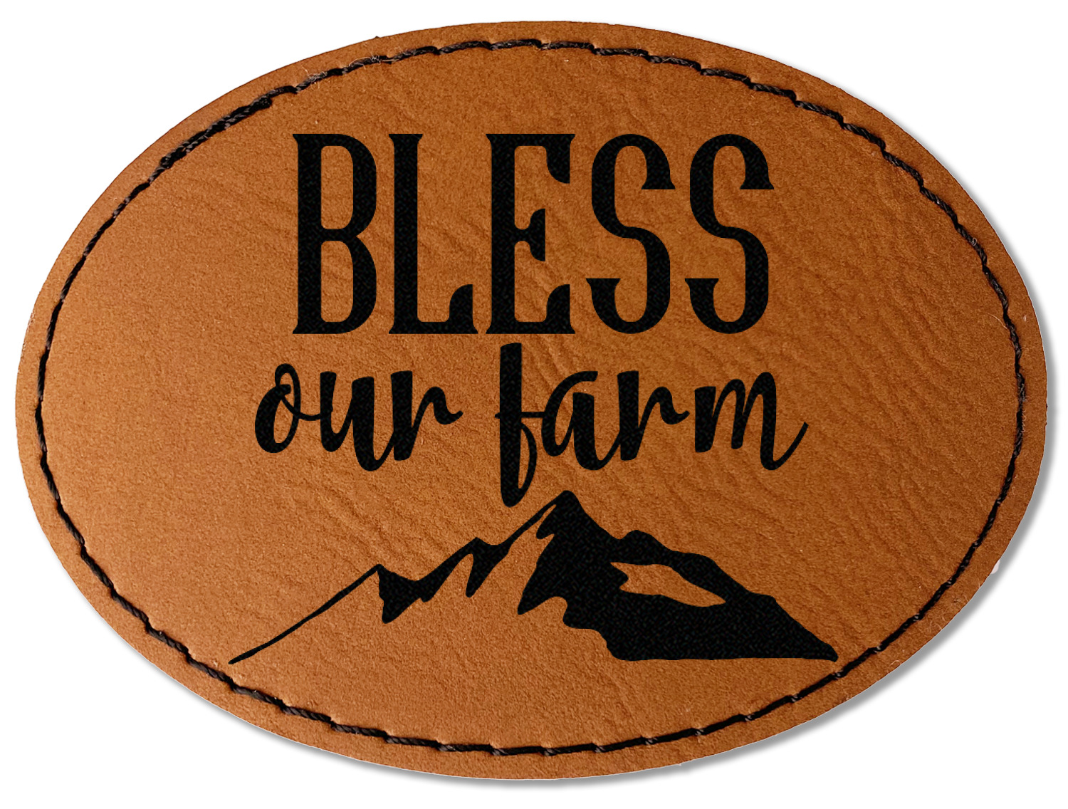 Our leather patches come in 4 different shapes - Square (3" x 3"), Round (3" x 3"), Oval (3.5" x 2.5"), Rectangle (3.5" x 2.5") and a beautiful rich brown rawhide or cognac color.