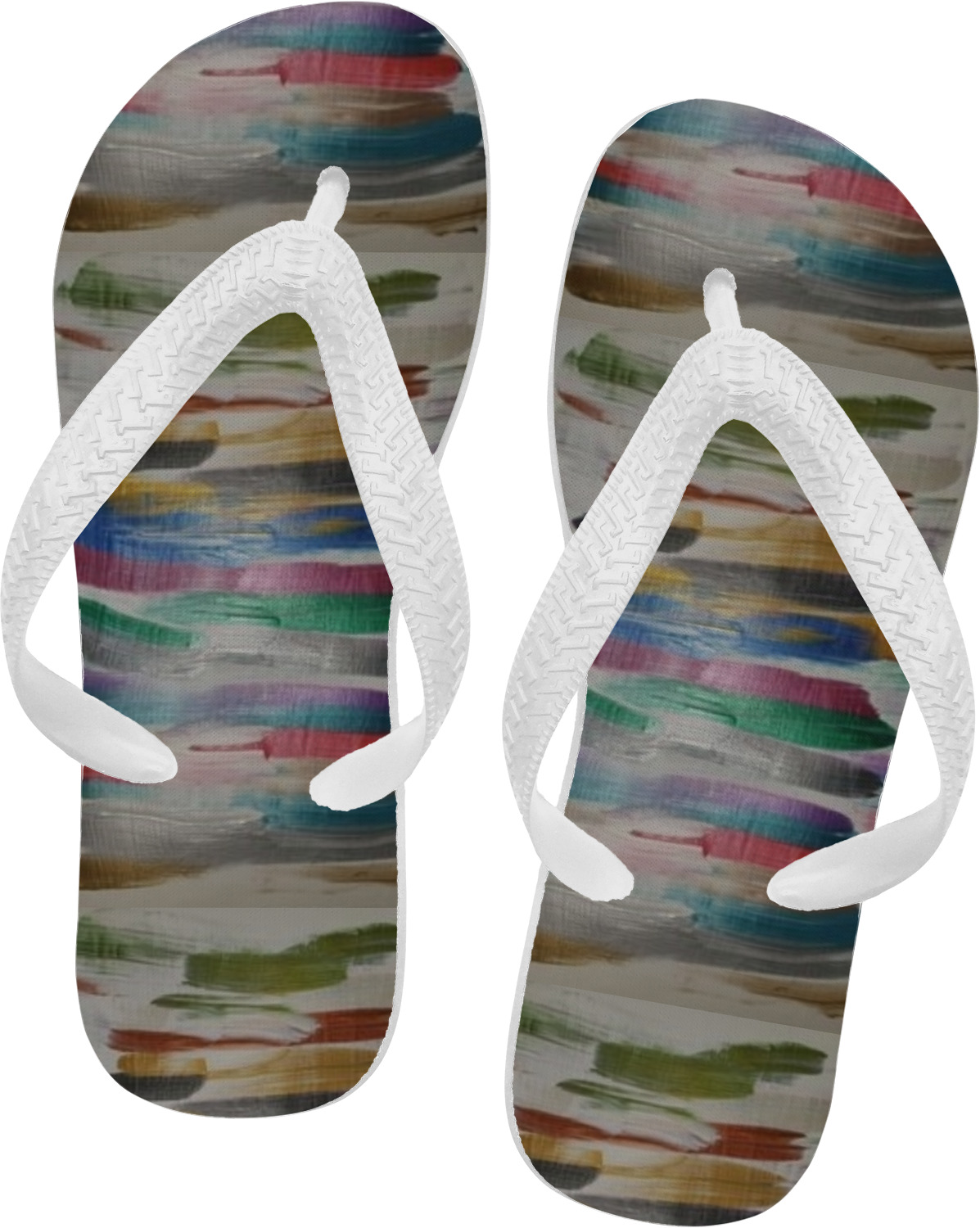 The flip flops have a rubber sole and are lined with a soft fabric that will make sure you feel comforatable wherever the days takes you. They also have a white Y-shape rubber straps and a post style toe.