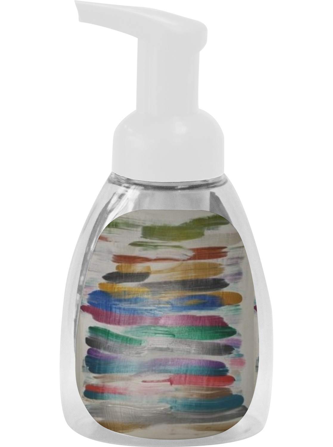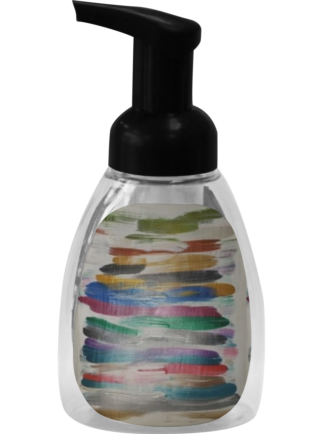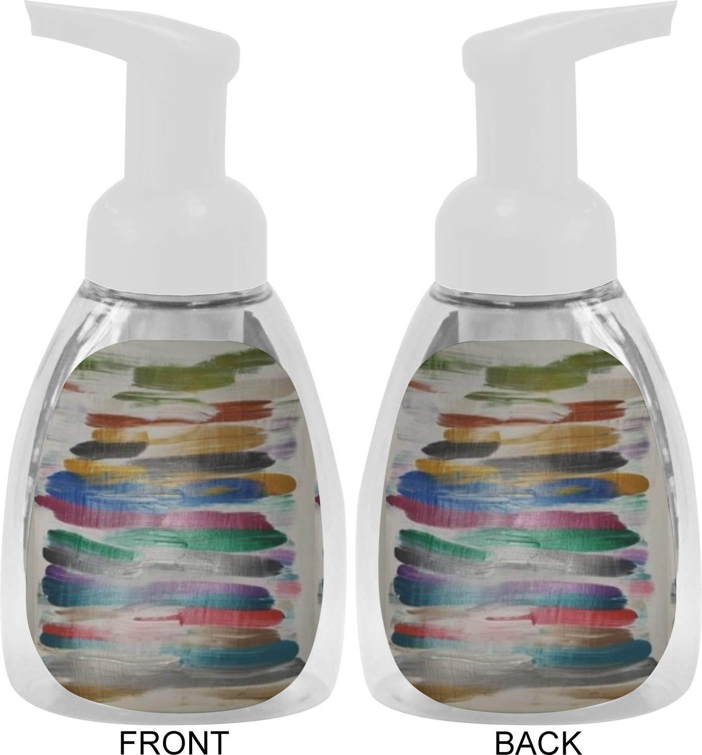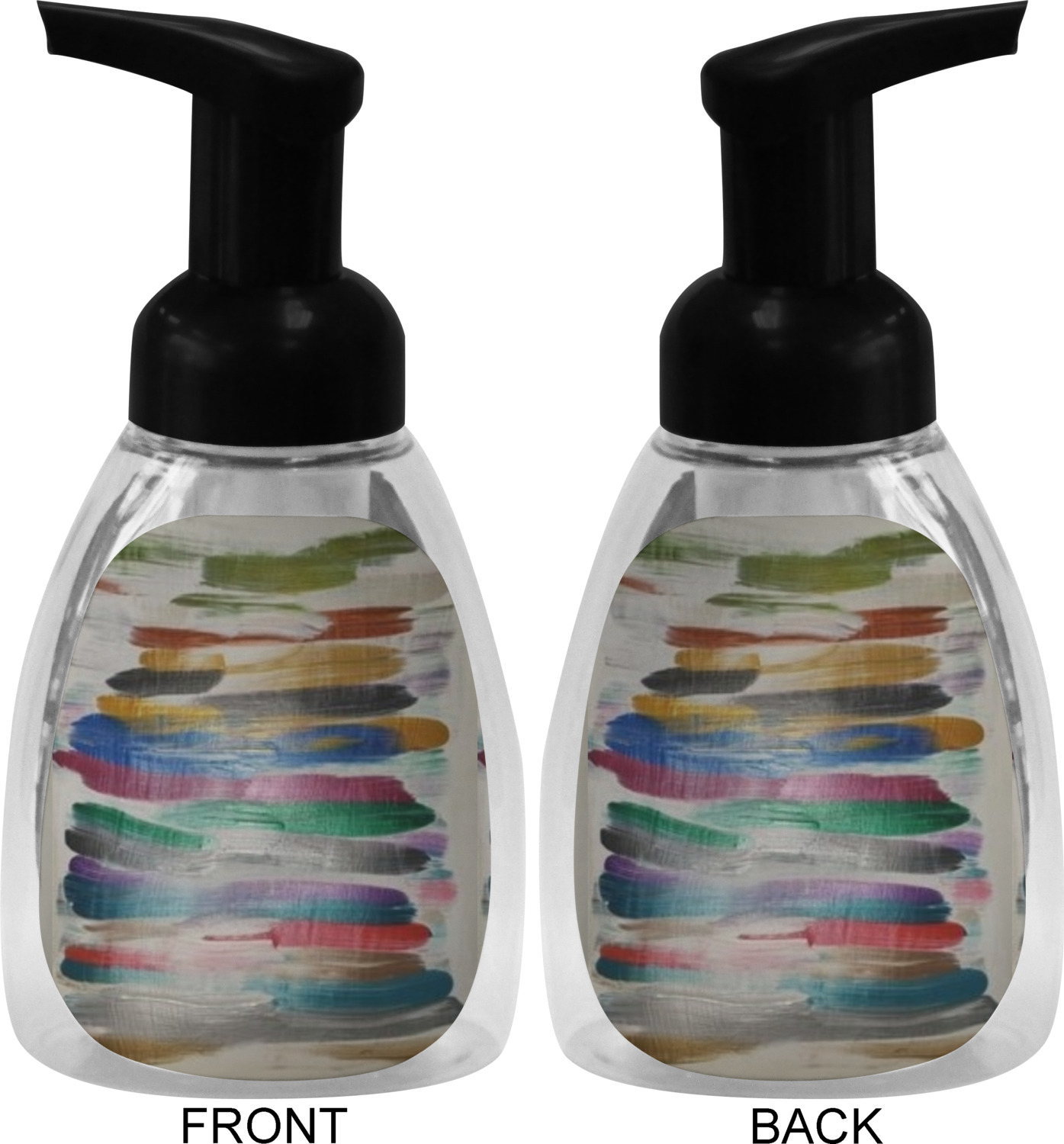 This soap dispenser is made of a robust plastic and has a clear base. The included soap pump is available in black or white color. This dispenser is 6.5 inches tall, 3 inches wide, and 2 inches deep. We display your customized designs on the front and back sides of these foaming hand soap dispensers.