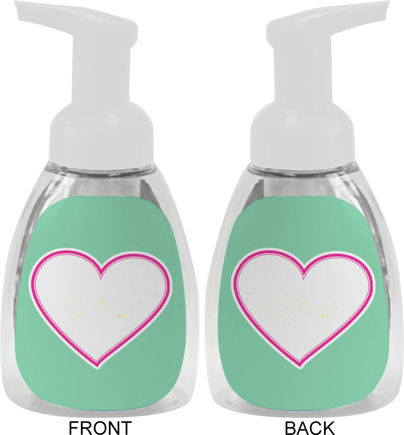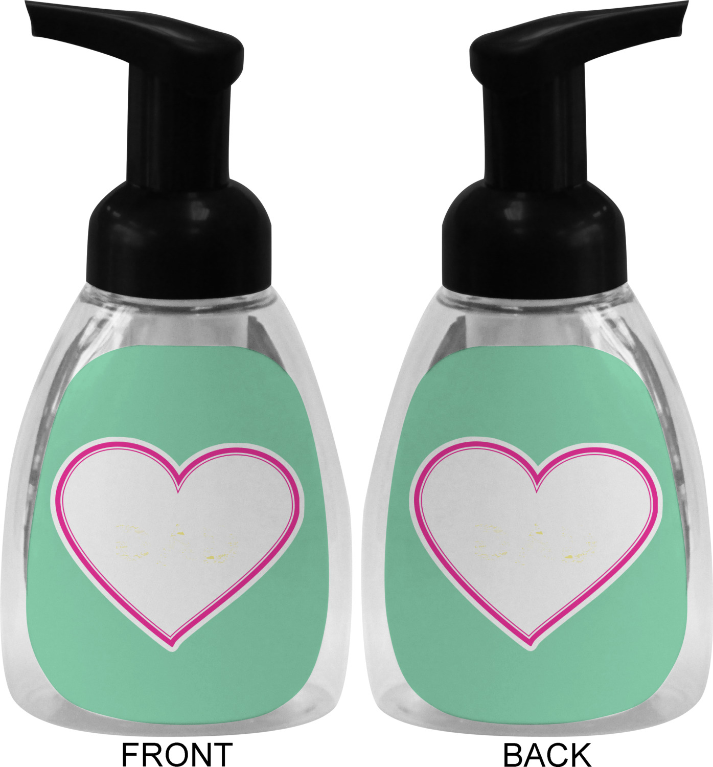 This soap dispenser is made of a robust plastic and has a clear base. The included soap pump is available in black or white color. This dispenser is 6.5 inches tall, 3 inches wide, and 2 inches deep. We display your customized designs on the front and back sides of these foaming hand soap dispensers.