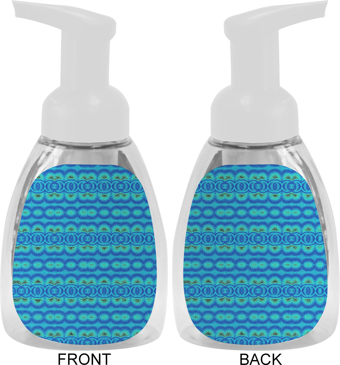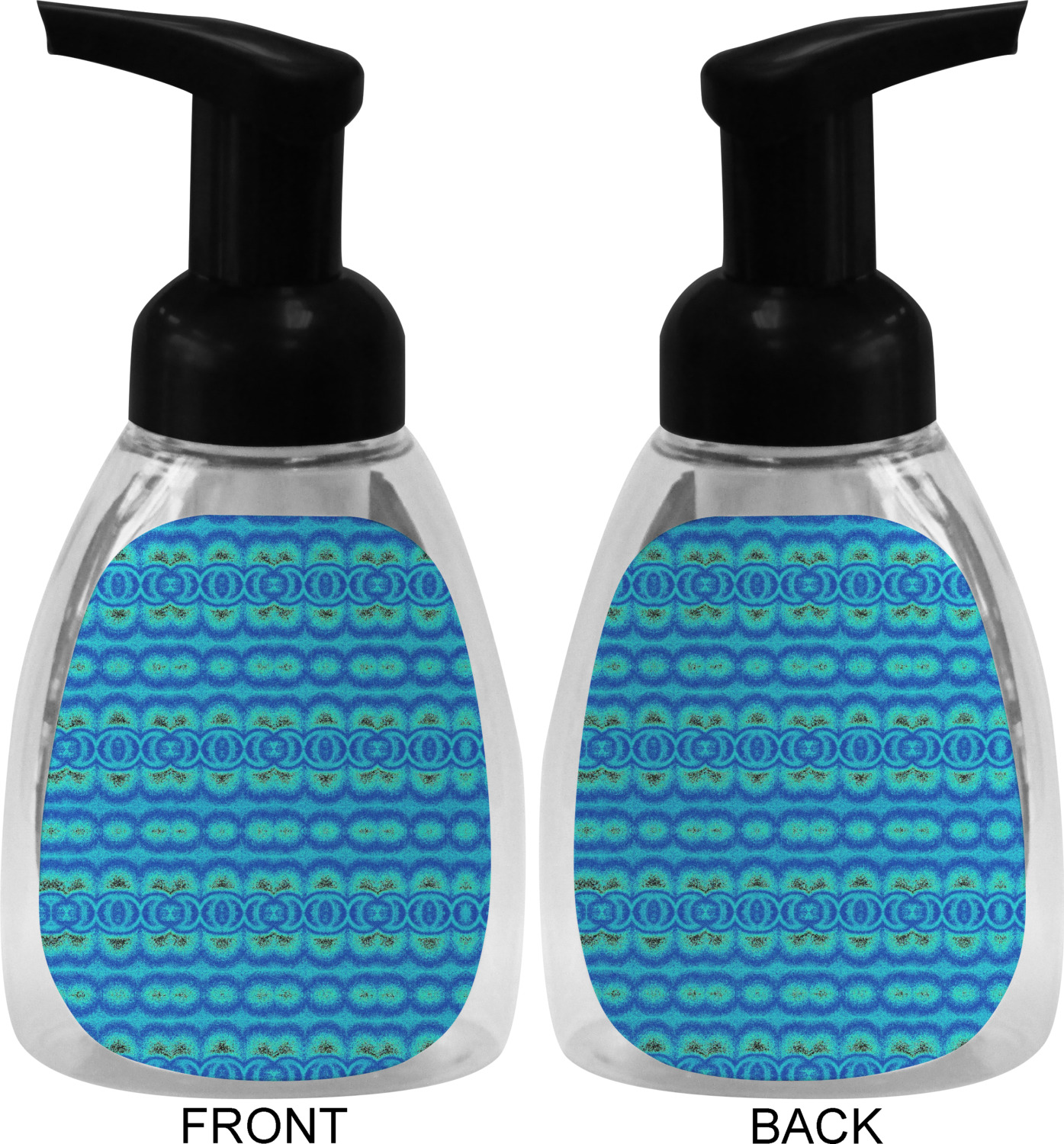 This soap dispenser is made of a robust plastic and has a clear base. The included soap pump is available in black or white color. This dispenser is 6.5 inches tall, 3 inches wide, and 2 inches deep. We display your customized designs on the front and back sides of these foaming hand soap dispensers.