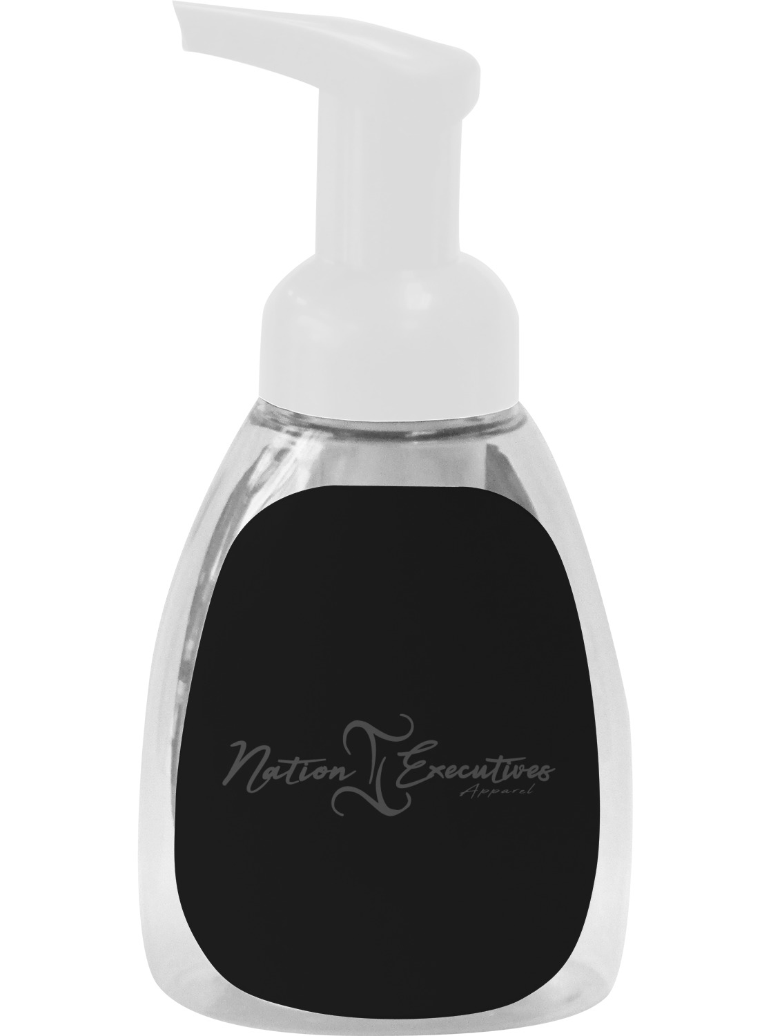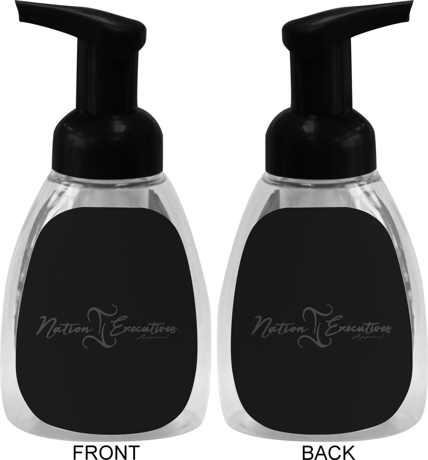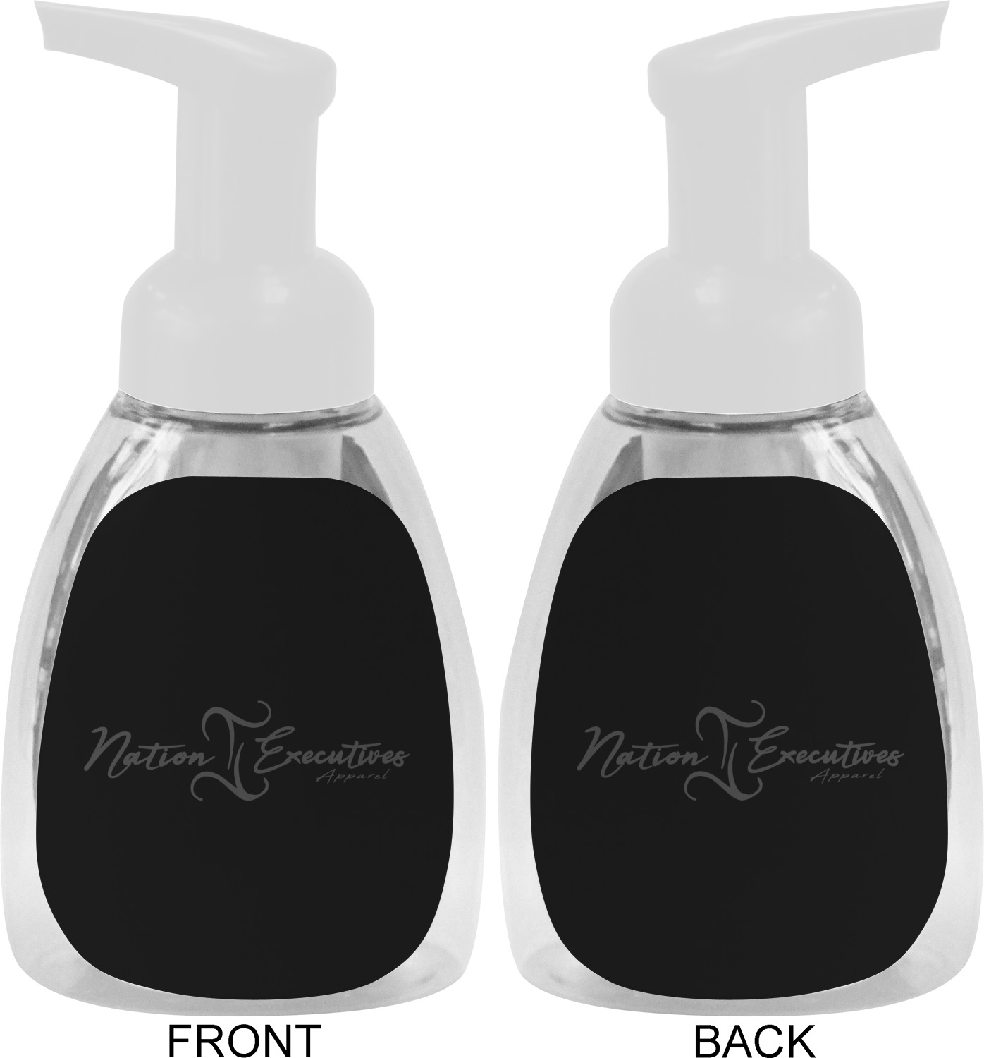 This soap dispenser is made of a robust plastic and has a clear base. The included soap pump is available in black or white color. This dispenser is 6.5 inches tall, 3 inches wide, and 2 inches deep. We display your customized designs on the front and back sides of these foaming hand soap dispensers.