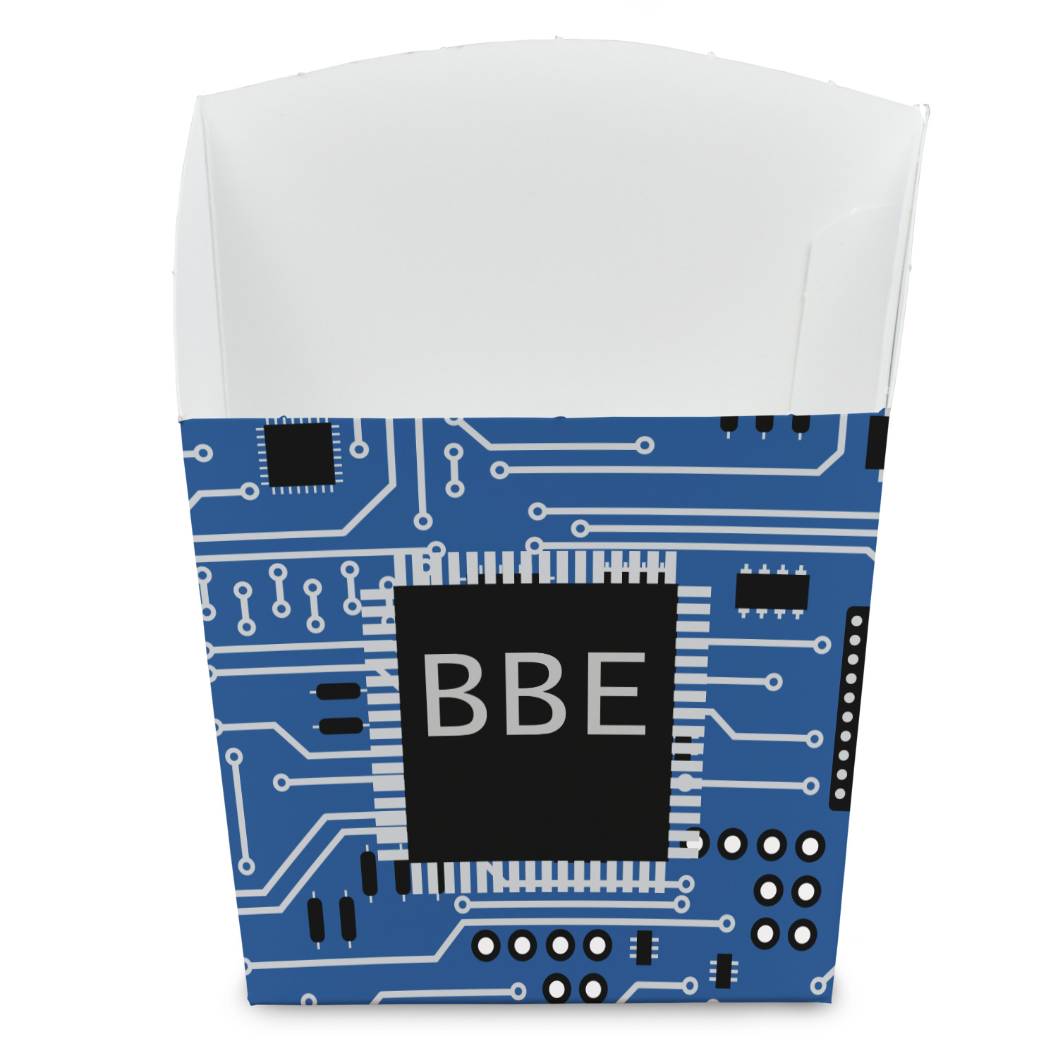 Since it is an open box, it works very well as a party snack cup (instead of plates) for different types of dry snacks and treats such as popcorn, cheezies, pretzels, chips, twizzlers, etc. This box can easily be carried with a drink all in one hand!