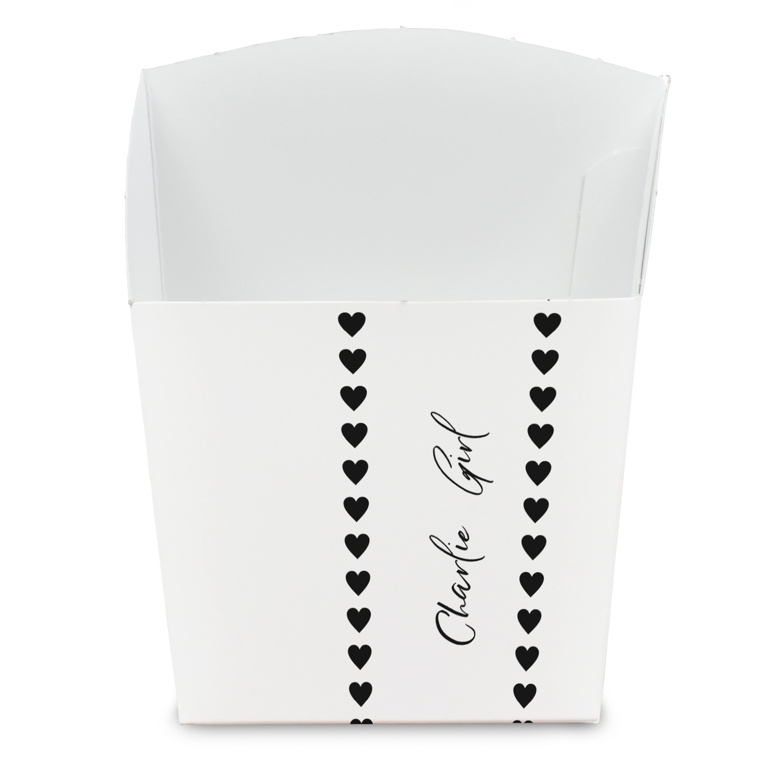 These favor boxes are printed in full color on quality cardstock - so coordinating the french fry favor boxes to match your event's themes or colors should be a breeze. You can upload your own design including artwork, logos or photos