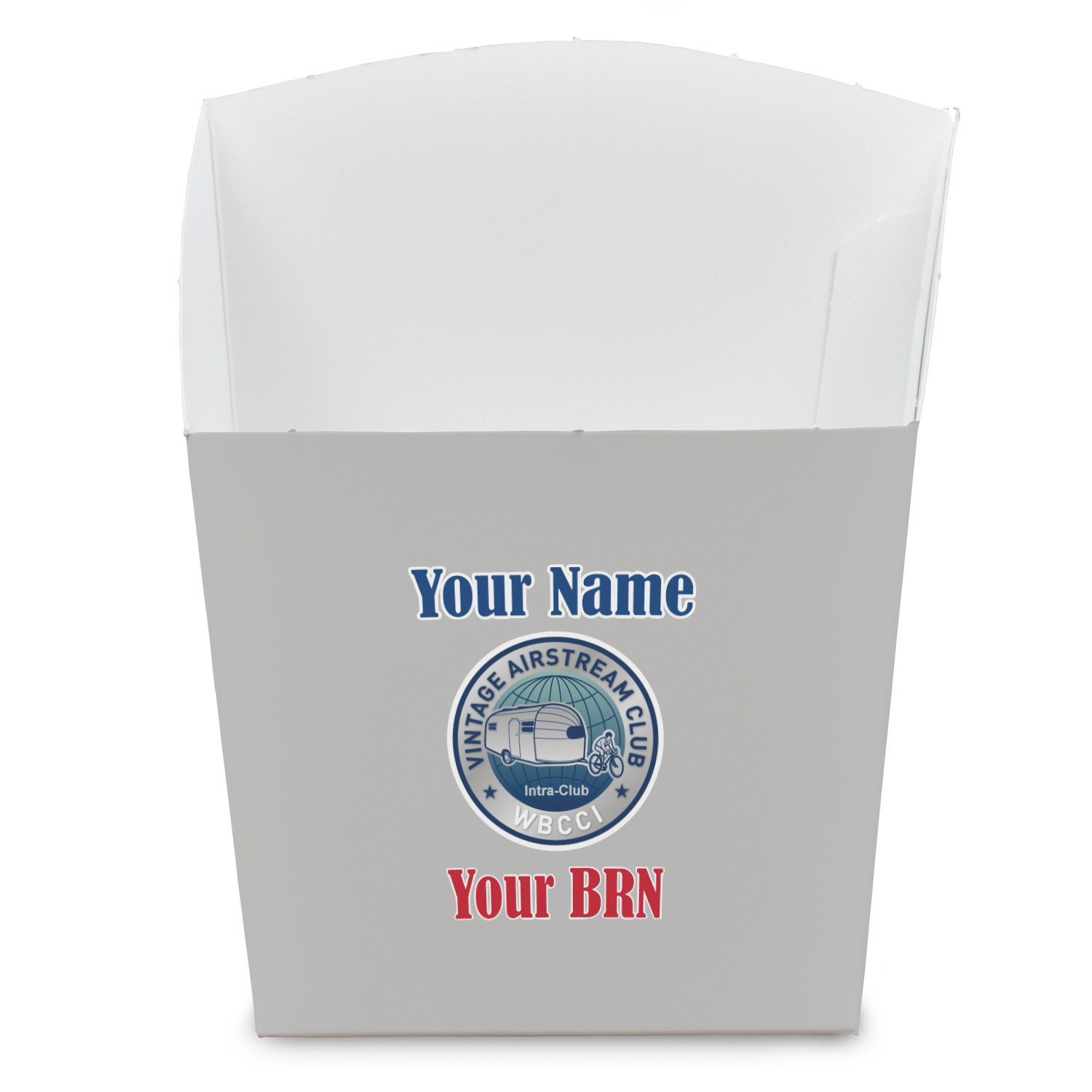 Since it is an open box, it works very well as a party snack cup (instead of plates) for different types of dry snacks and treats such as popcorn, cheezies, pretzels, chips, twizzlers, etc. This box can easily be carried with a drink all in one hand!