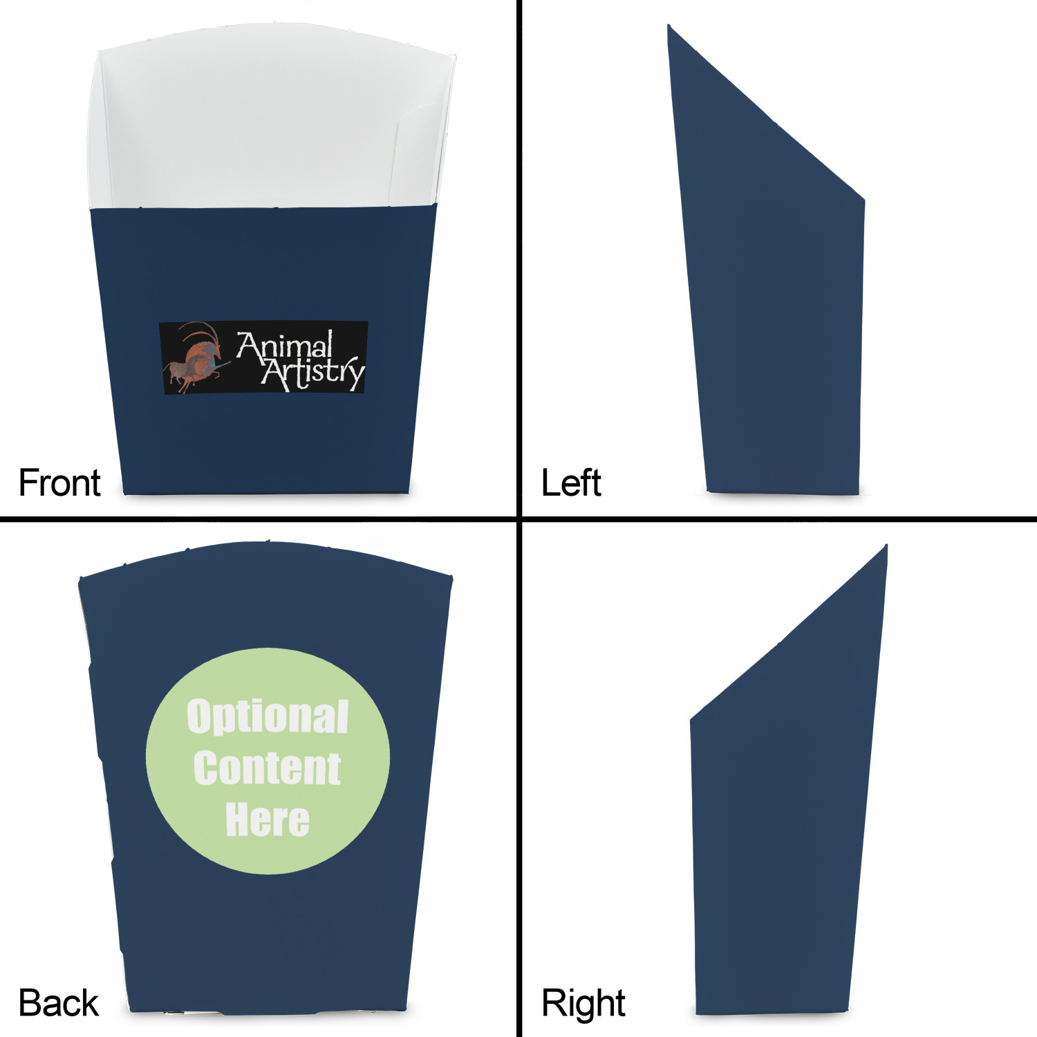 These favor boxes are printed in full color on quality cardstock - so coordinating the french fry favor boxes to match your event's themes or colors should be a breeze. You can upload your own design including artwork, logos or photos