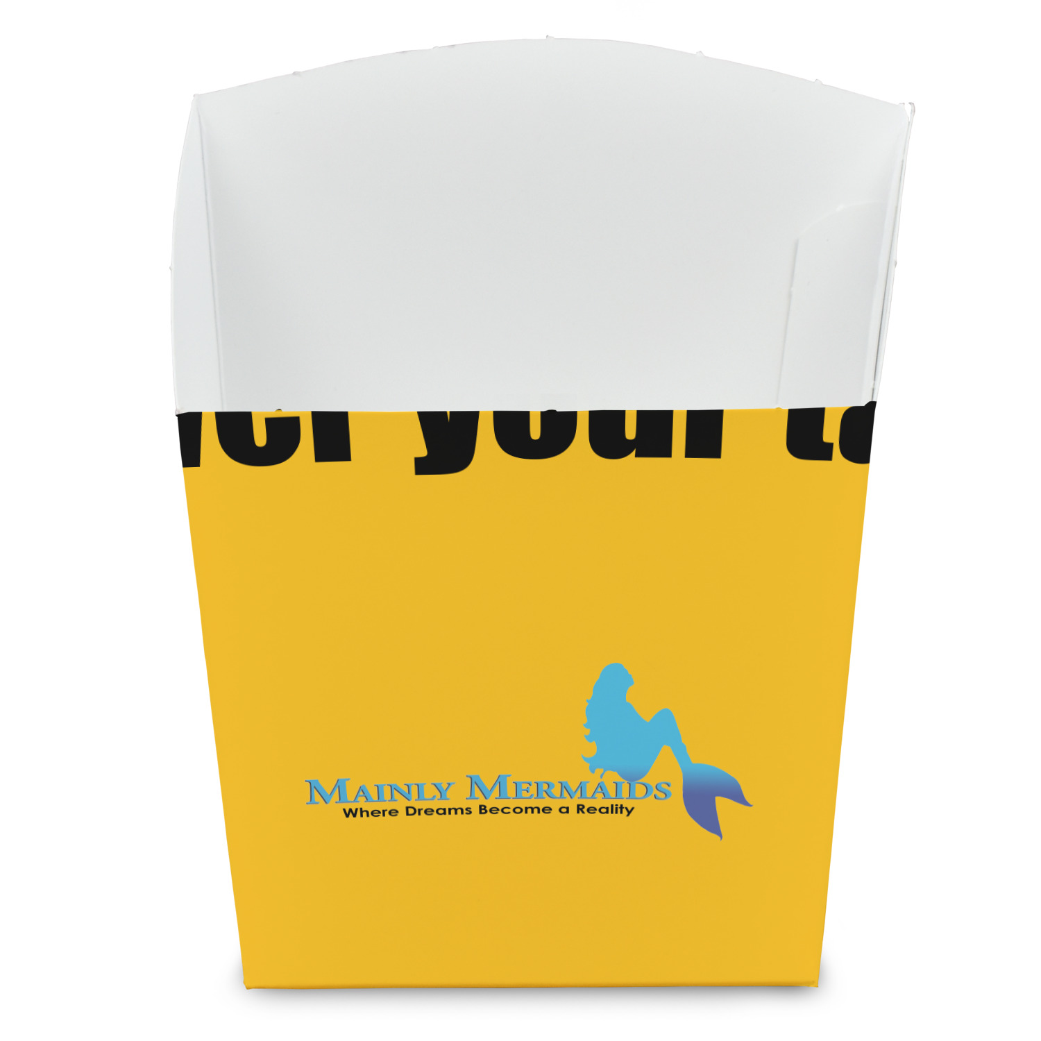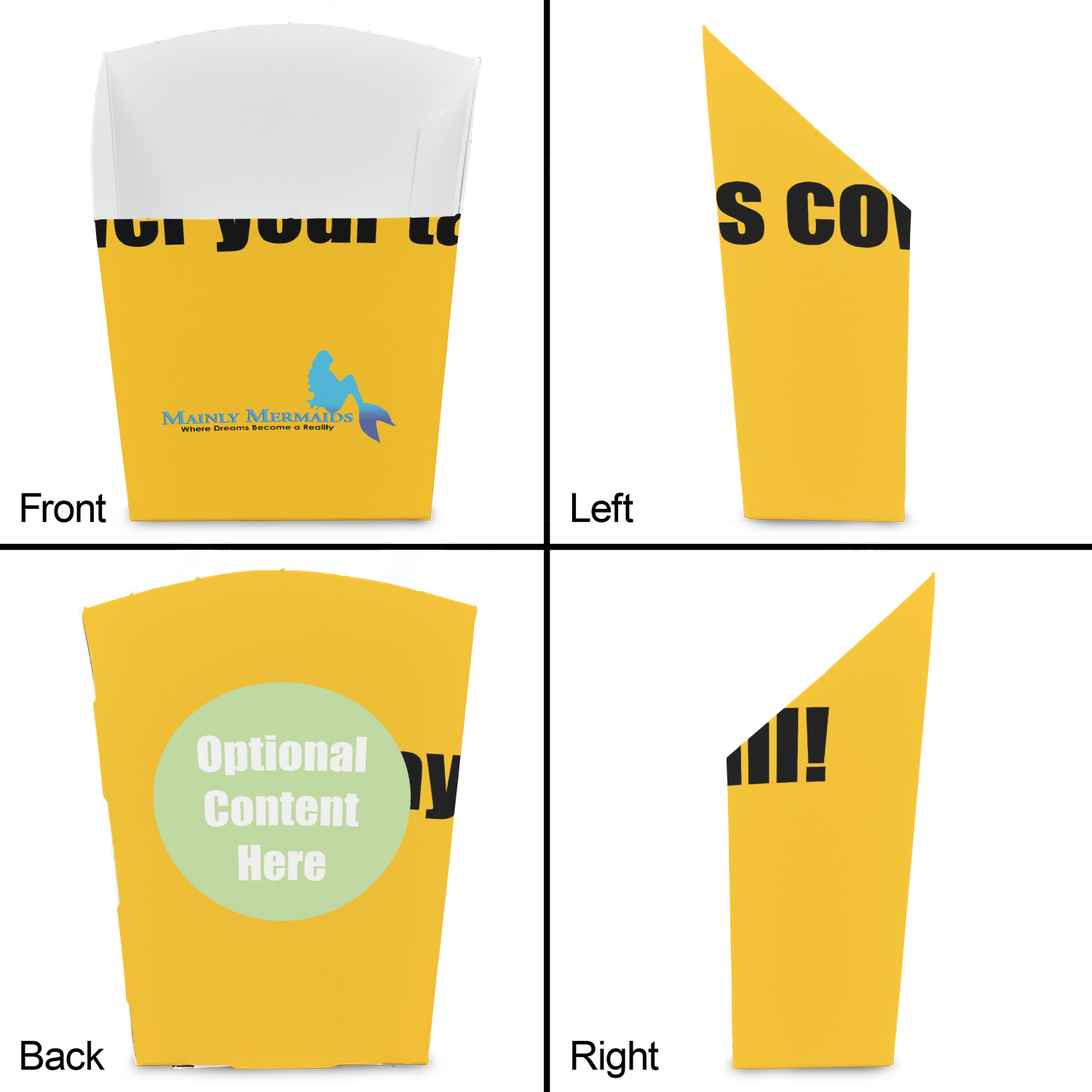 These favor boxes are printed in full color on quality cardstock - so coordinating the french fry favor boxes to match your event's themes or colors should be a breeze. You can upload your own design including artwork, logos or photos