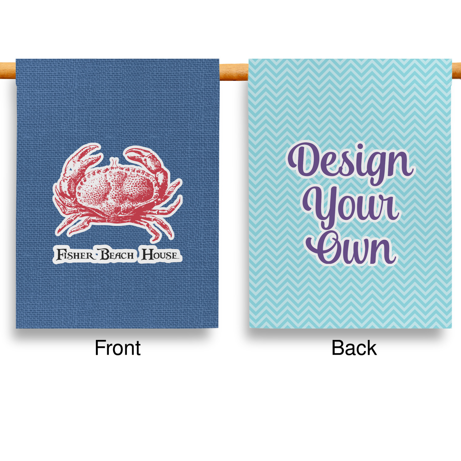 These custom garden flags are made of a durable, double-ply, polyester weave, allowing them to withstand the elements year round. The small flags measure at approximately 12 by 18 inches. The large flags measure out to 28 by 37 inches. You can order these decorative flags with your customization printed on the front only, or the front and back.