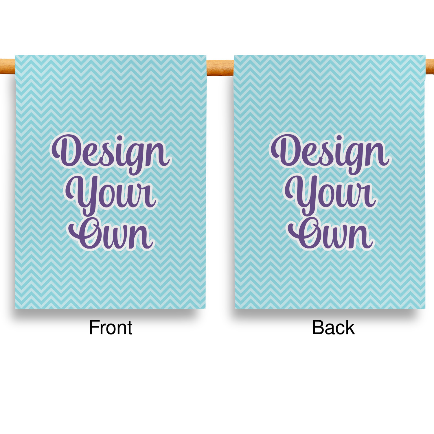 These custom garden flags are made of a durable, double-ply, polyester weave, allowing them to withstand the elements year round. The small flags measure at approximately 12 by 18 inches. The large flags measure out to 28 by 37 inches. You can order these decorative flags with your customization printed on the front only, or the front and back.
