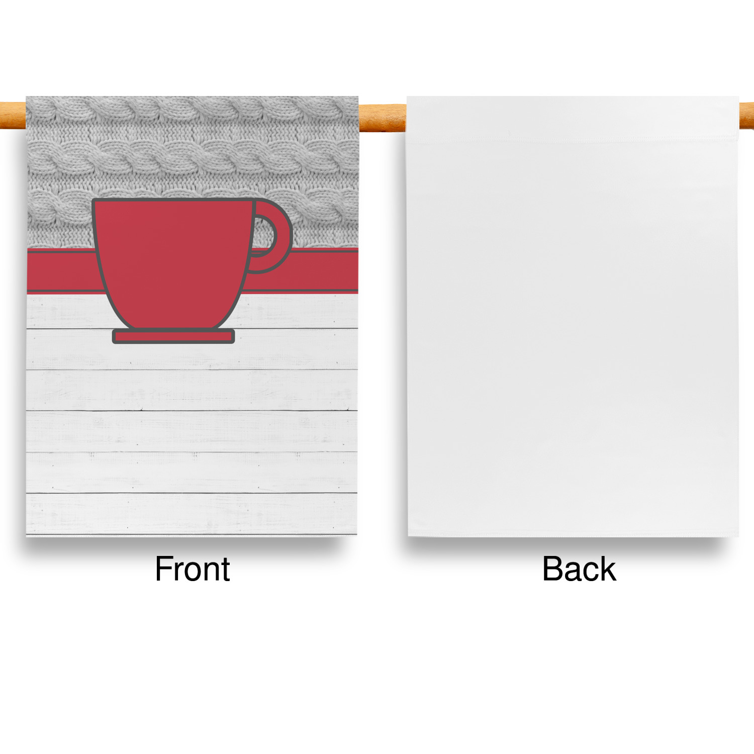 These custom garden flags are made of a durable, double-ply, polyester weave, allowing them to withstand the elements year round. The small flags measure at approximately 12 by 18 inches. The large flags measure out to 28 by 37 inches. You can order these decorative flags with your customization printed on the front only, or the front and back.