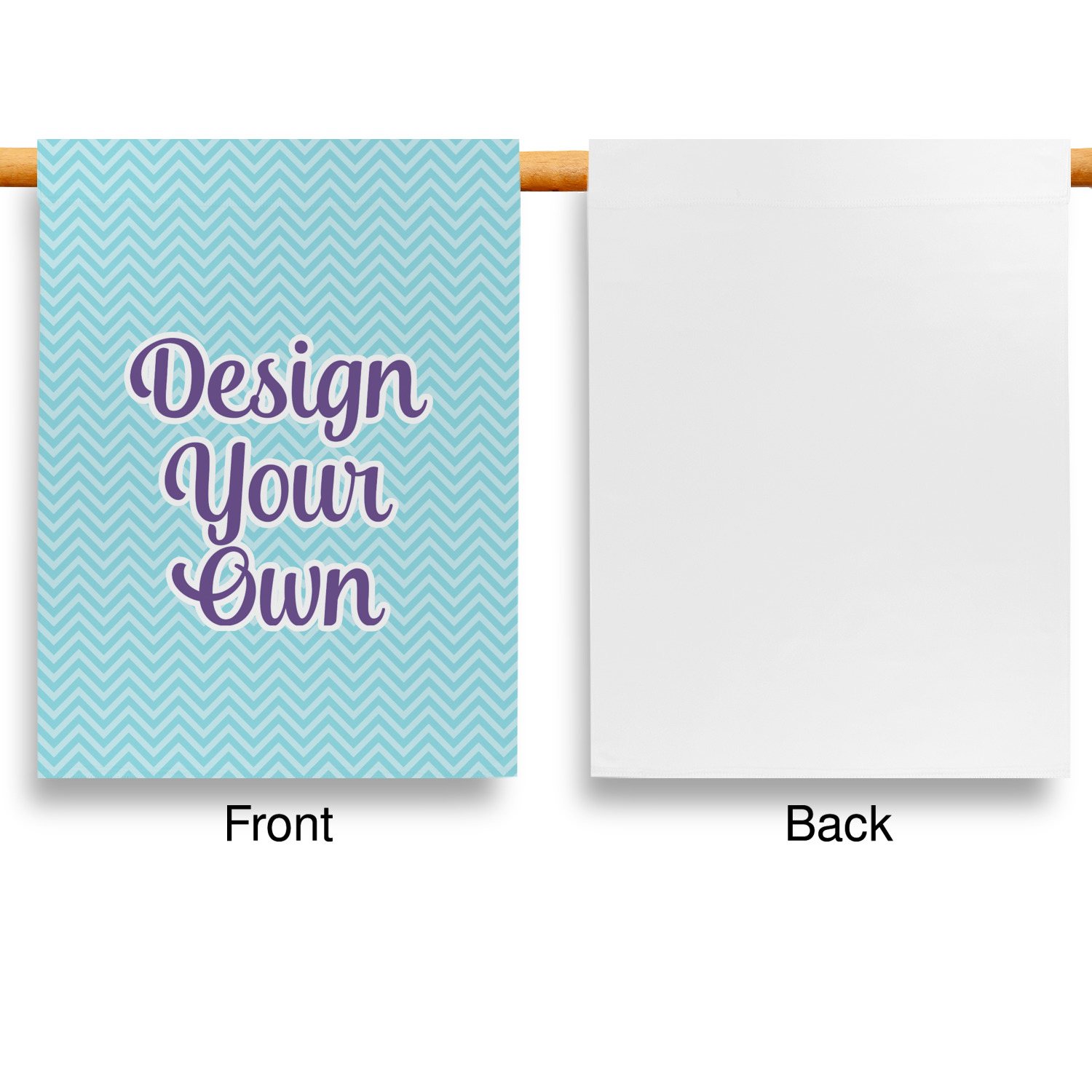 These custom garden flags are made of a durable, double-ply, polyester weave, allowing them to withstand the elements year round. The small flags measure at approximately 12 by 18 inches. The large flags measure out to 28 by 37 inches. You can order these decorative flags with your customization printed on the front only, or the front and back.