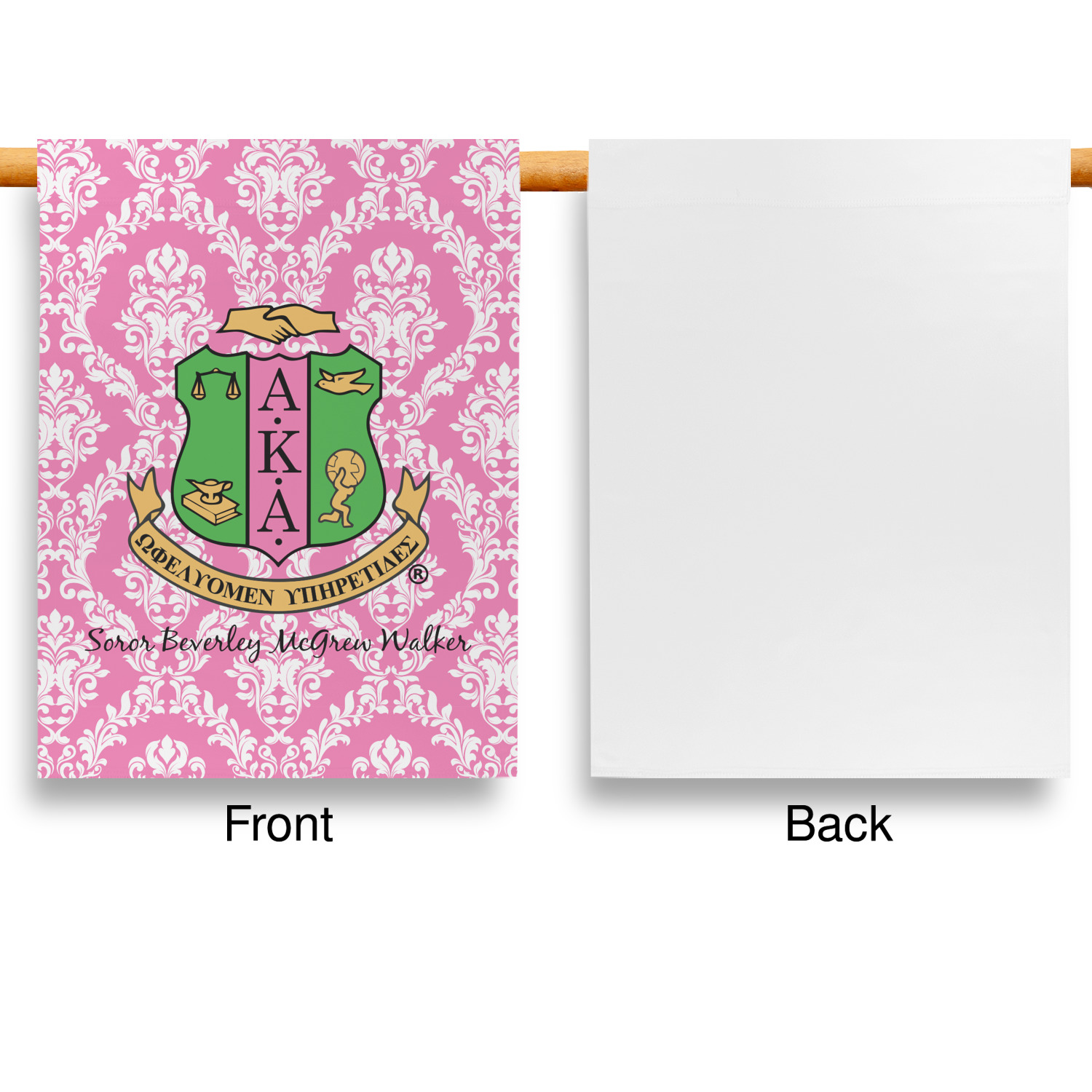 These custom garden flags are made of a durable, double-ply, polyester weave, allowing them to withstand the elements year round. The small flags measure at approximately 12 by 18 inches. The large flags measure out to 28 by 37 inches. You can order these decorative flags with your customization printed on the front only, or the front and back.
