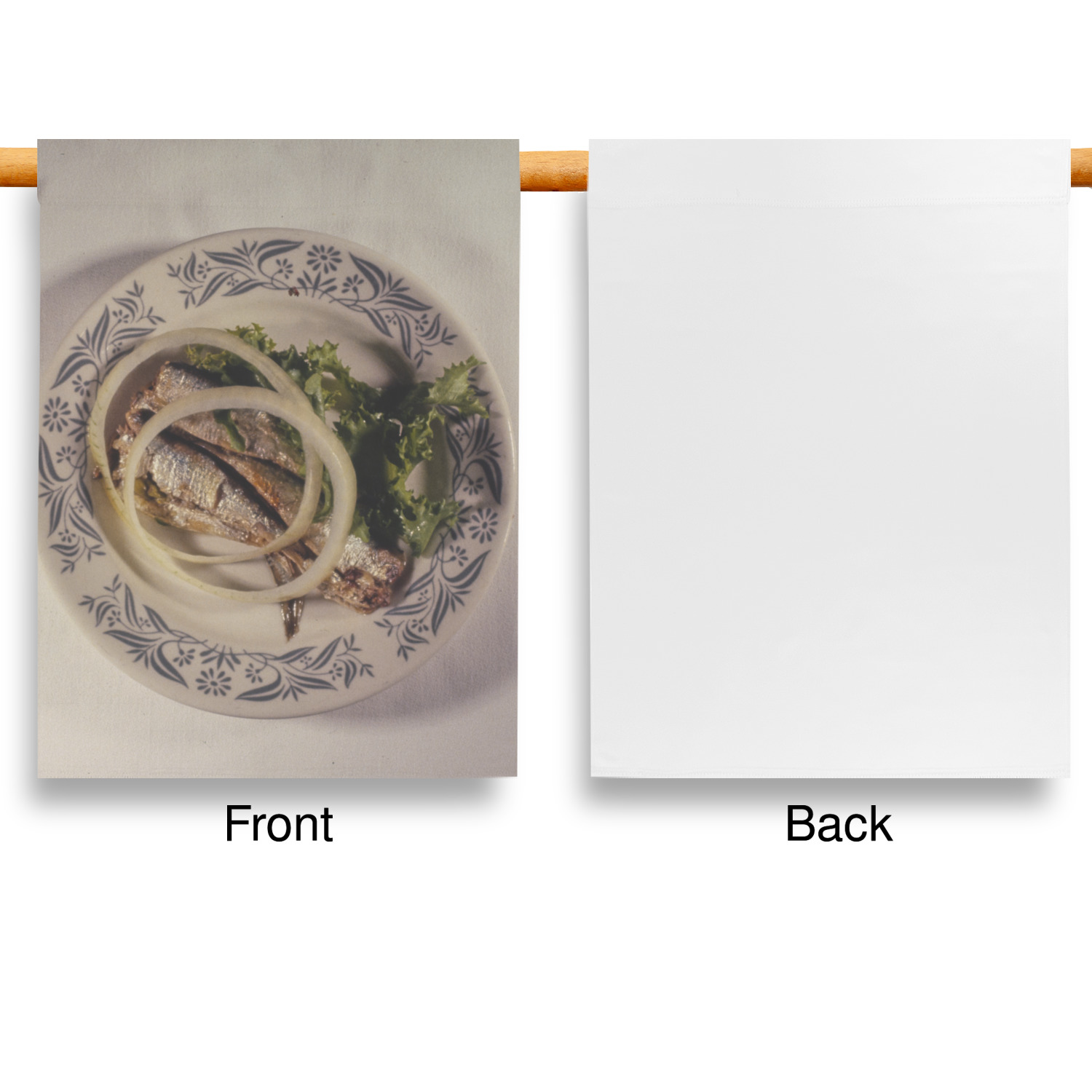 These custom garden flags are made of a durable, double-ply, polyester weave, allowing them to withstand the elements year round. The small flags measure at approximately 12 by 18 inches. The large flags measure out to 28 by 37 inches. You can order these decorative flags with your customization printed on the front only, or the front and back.
