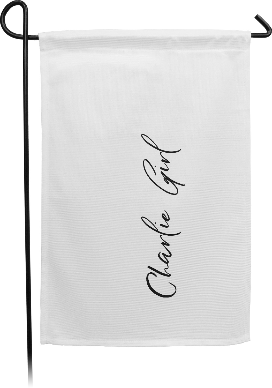 These custom garden flags are made of a durable, double-ply, polyester weave, allowing them to withstand the elements year round. The small flags measure at approximately 12 by 18 inches. The large flags measure out to 28 by 37 inches. You can order these decorative flags with your customization printed on the front only, or the front and back.