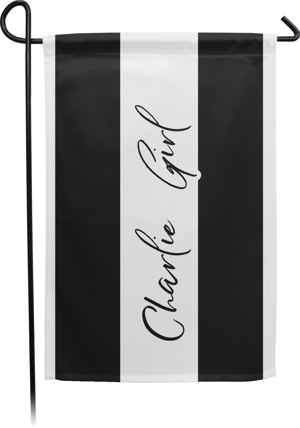 These custom garden flags are made of a durable, double-ply, polyester weave, allowing them to withstand the elements year round. The small flags measure at approximately 12 by 18 inches. The large flags measure out to 28 by 37 inches. You can order these decorative flags with your customization printed on the front only, or the front and back.