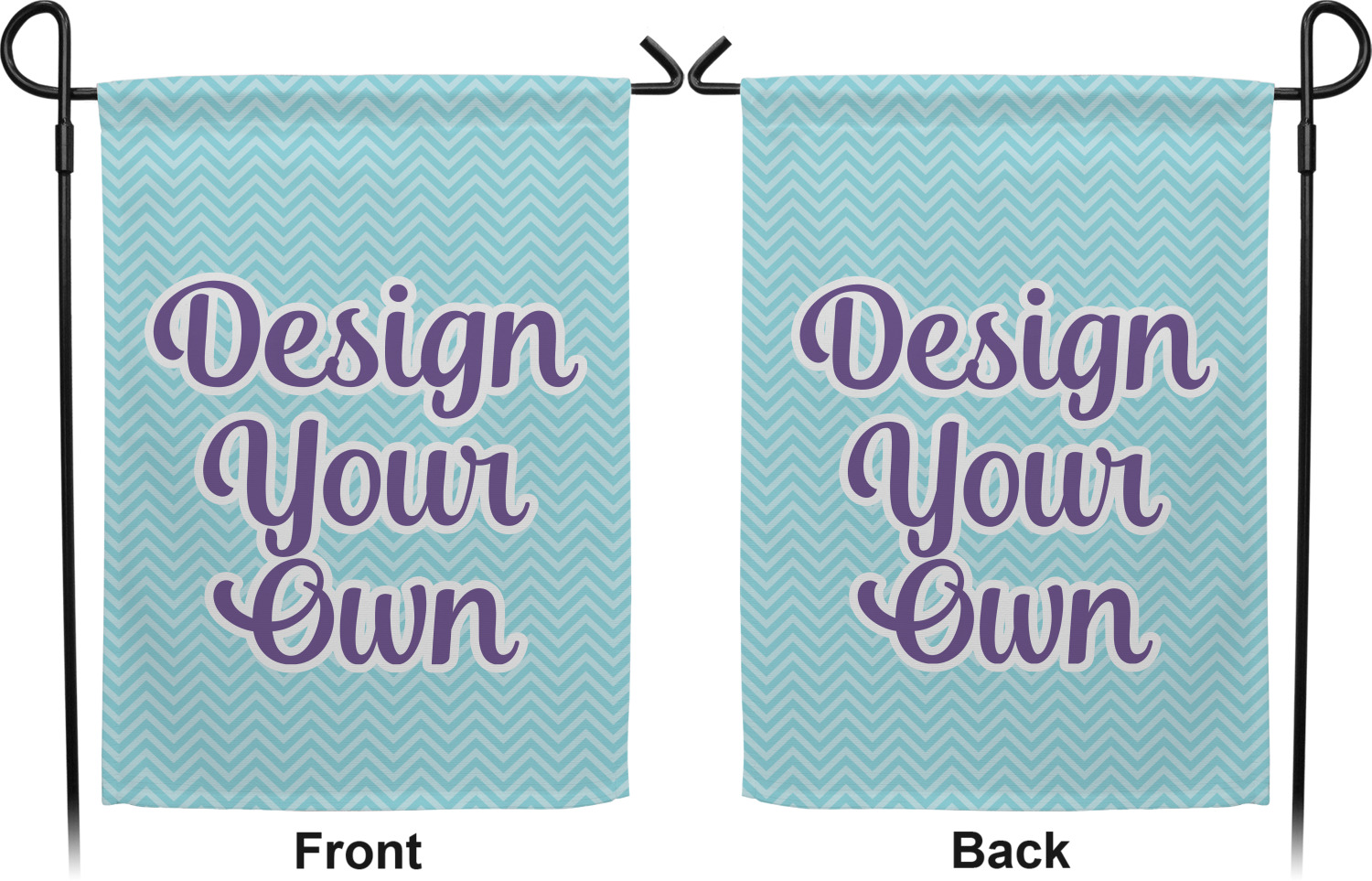 These custom garden flags are made of a durable, double-ply, polyester weave, allowing them to withstand the elements year round. The small flags measure at approximately 12 by 18 inches. The large flags measure out to 28 by 37 inches. You can order these decorative flags with your customization printed on the front only, or the front and back.