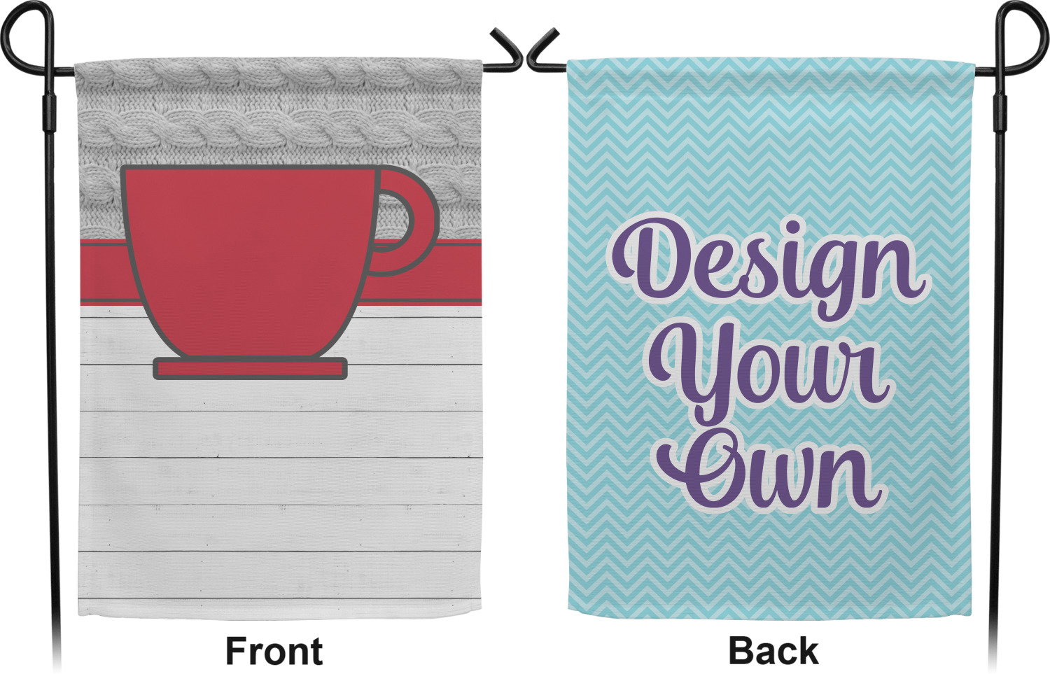 These custom garden flags are made of a durable, double-ply, polyester weave, allowing them to withstand the elements year round. The small flags measure at approximately 12 by 18 inches. The large flags measure out to 28 by 37 inches. You can order these decorative flags with your customization printed on the front only, or the front and back.