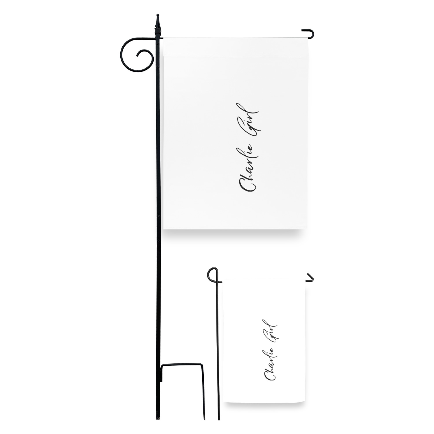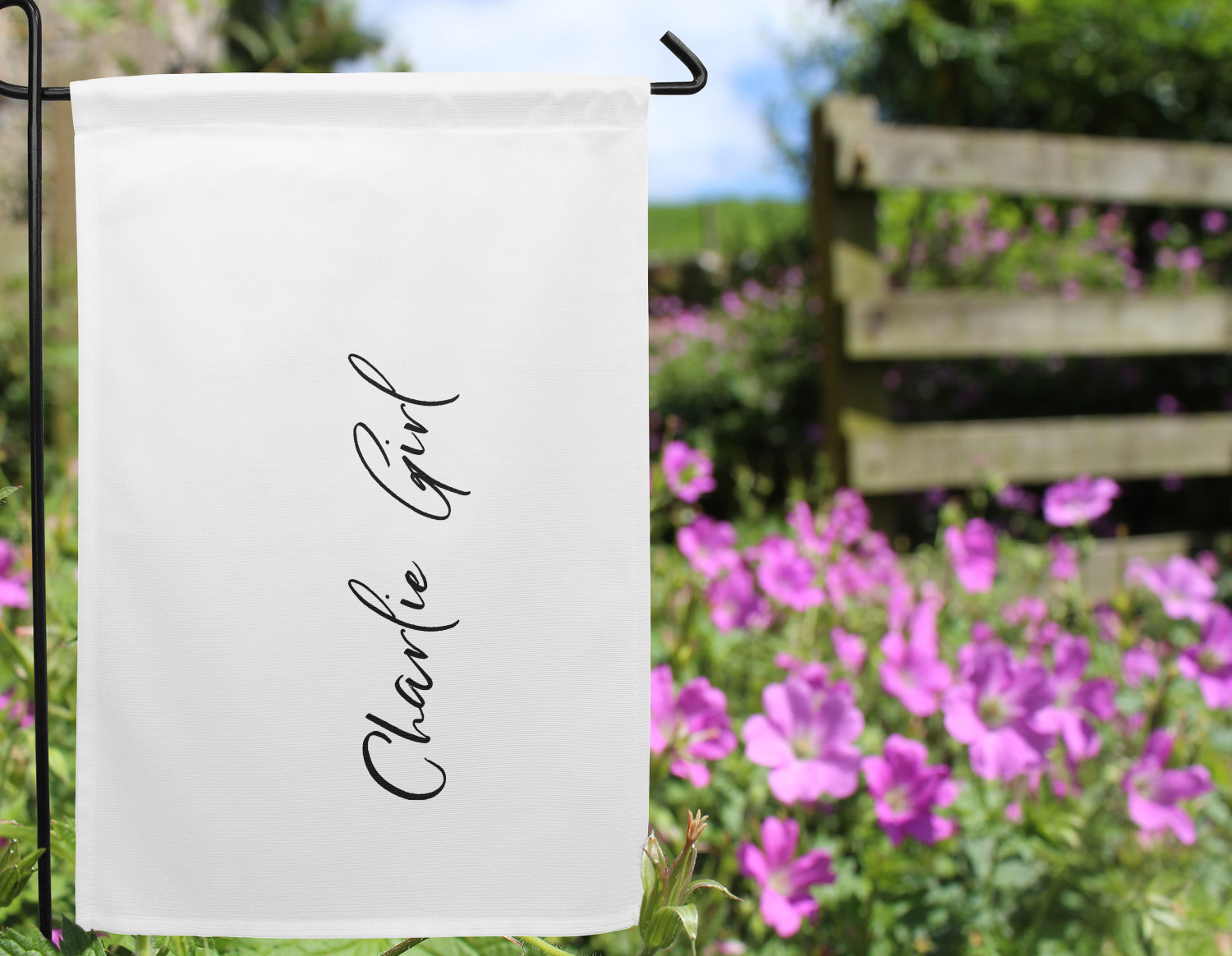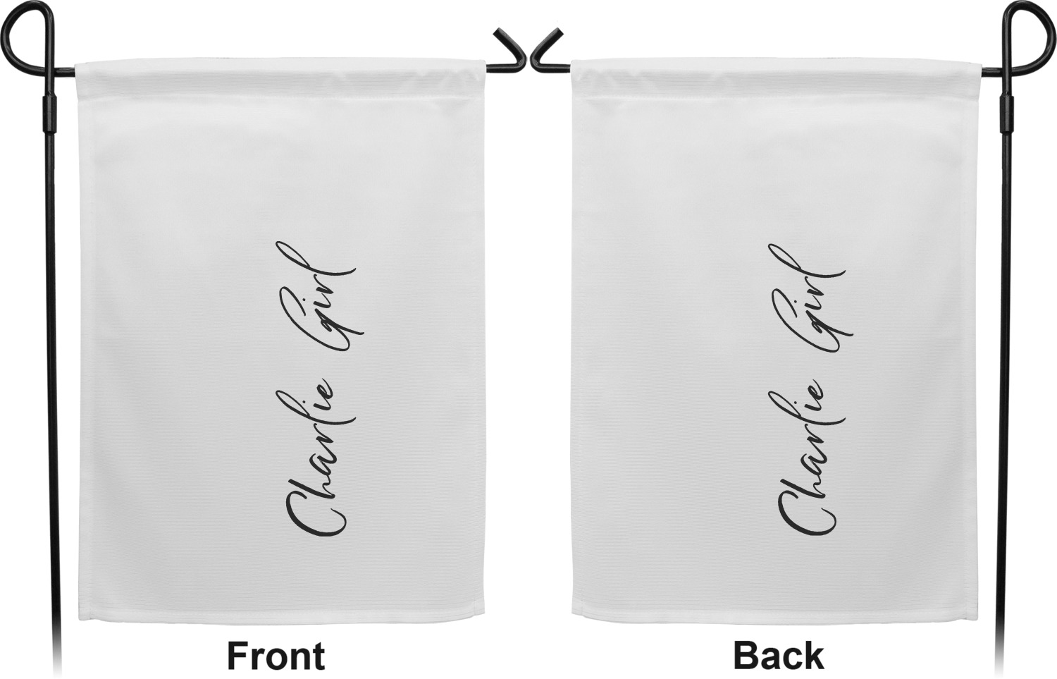 These custom garden flags are made of a durable, double-ply, polyester weave, allowing them to withstand the elements year round. The small flags measure at approximately 12 by 18 inches. The large flags measure out to 28 by 37 inches. You can order these decorative flags with your customization printed on the front only, or the front and back.