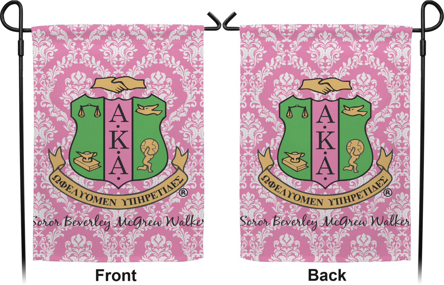These custom garden flags are made of a durable, double-ply, polyester weave, allowing them to withstand the elements year round. The small flags measure at approximately 12 by 18 inches. The large flags measure out to 28 by 37 inches. You can order these decorative flags with your customization printed on the front only, or the front and back.