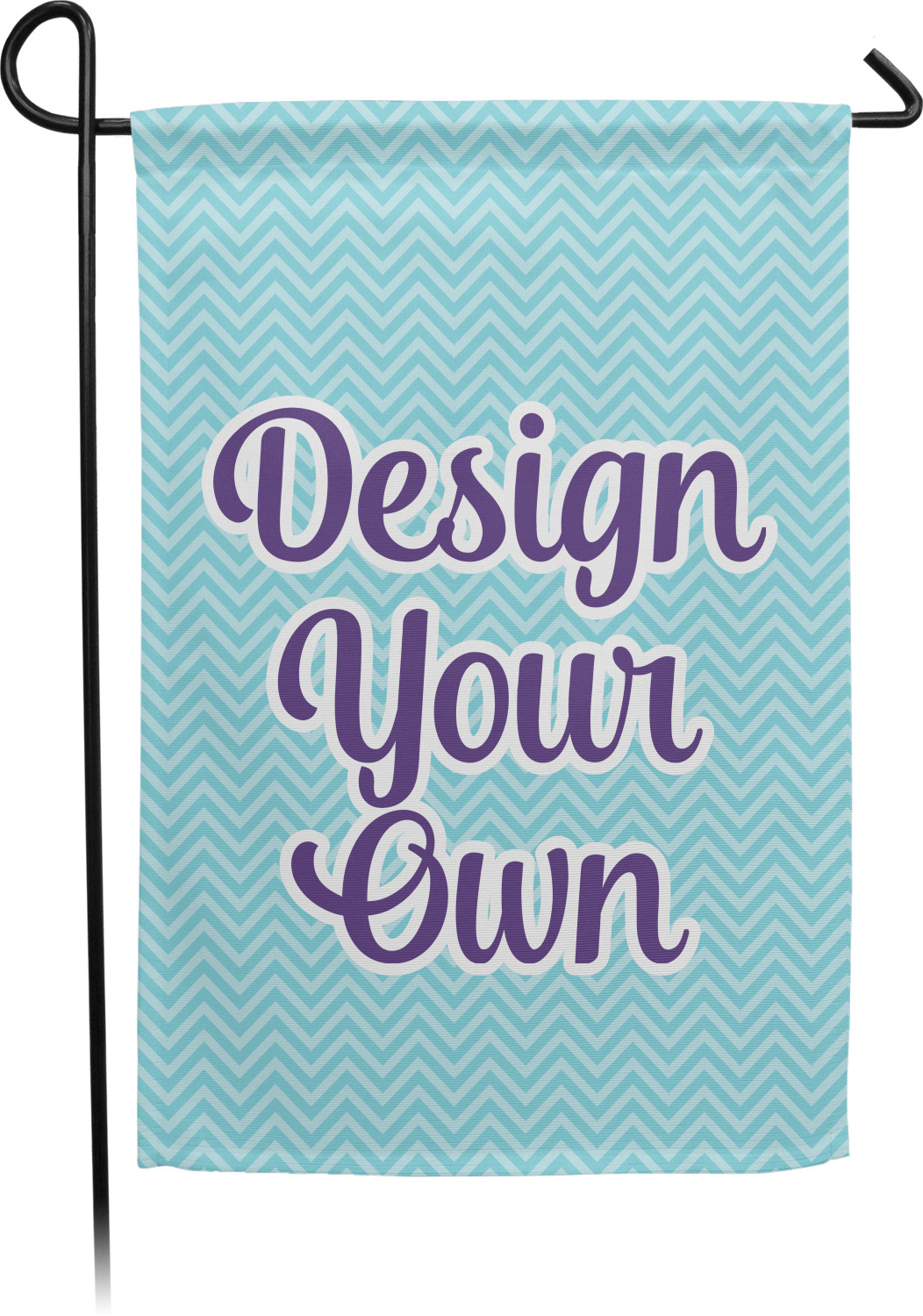 These custom garden flags are made of a durable, double-ply, polyester weave, allowing them to withstand the elements year round. The small flags measure at approximately 12 by 18 inches. The large flags measure out to 28 by 37 inches. You can order these decorative flags with your customization printed on the front only, or the front and back.